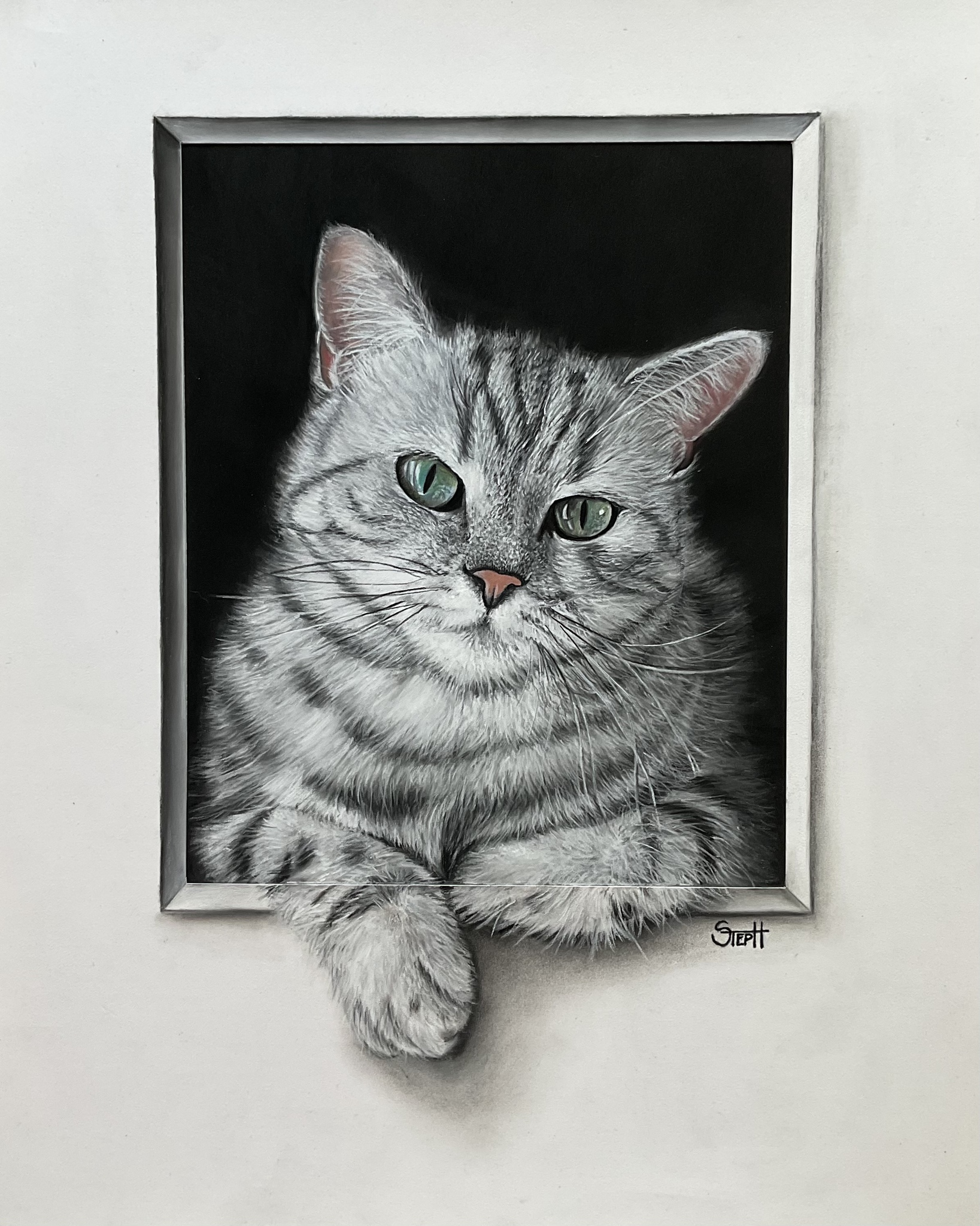 Naast het realistisch tekenen en schilderen van vooral dieren, ontwerp ik ook eigen schilderijen en hou ik ook van een tikkeltje surrealisme. Ik werk voornamelijk met pastel en acryl.