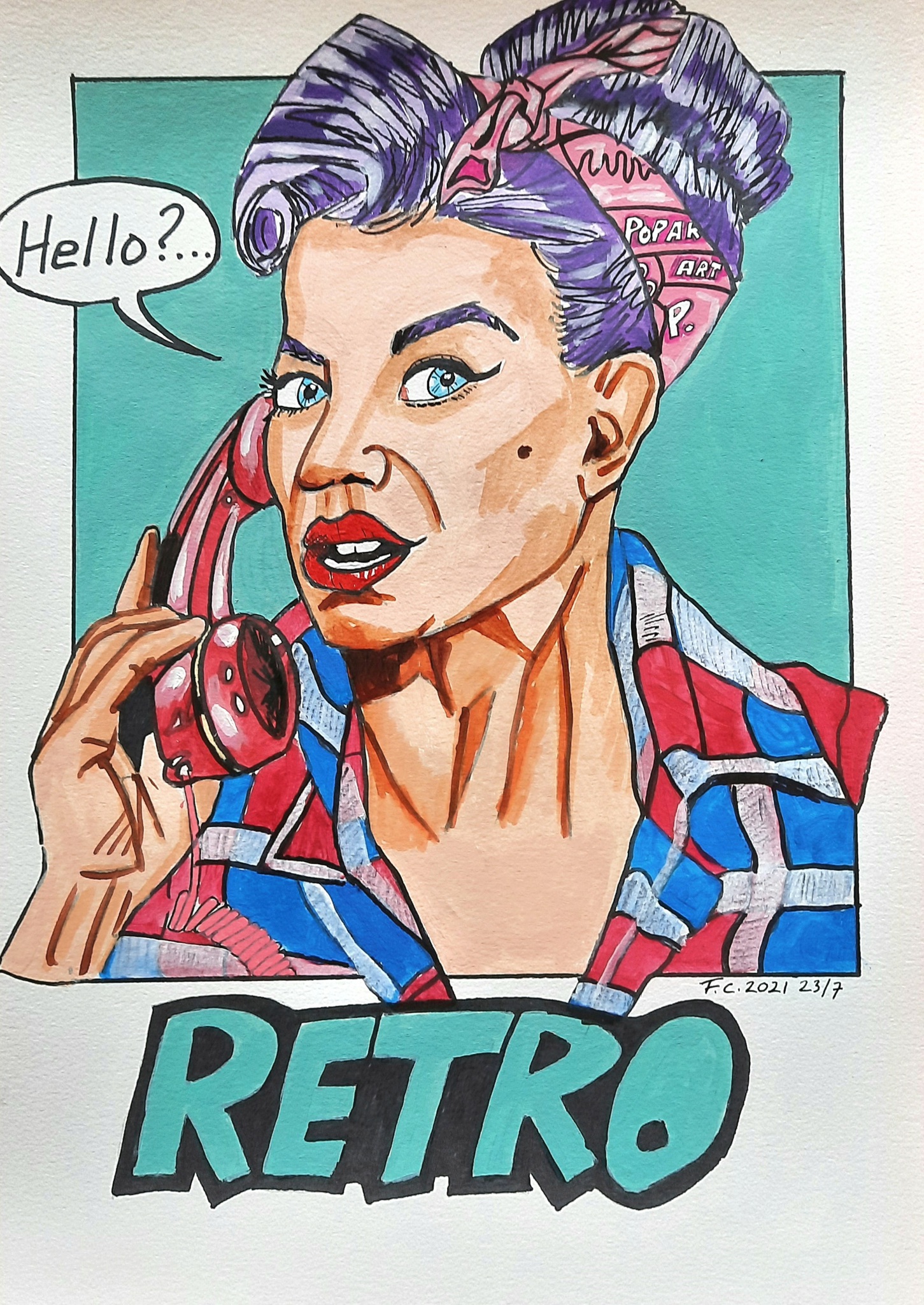 Vrouw Mixed Media Retro Popart Telefoon Bellen