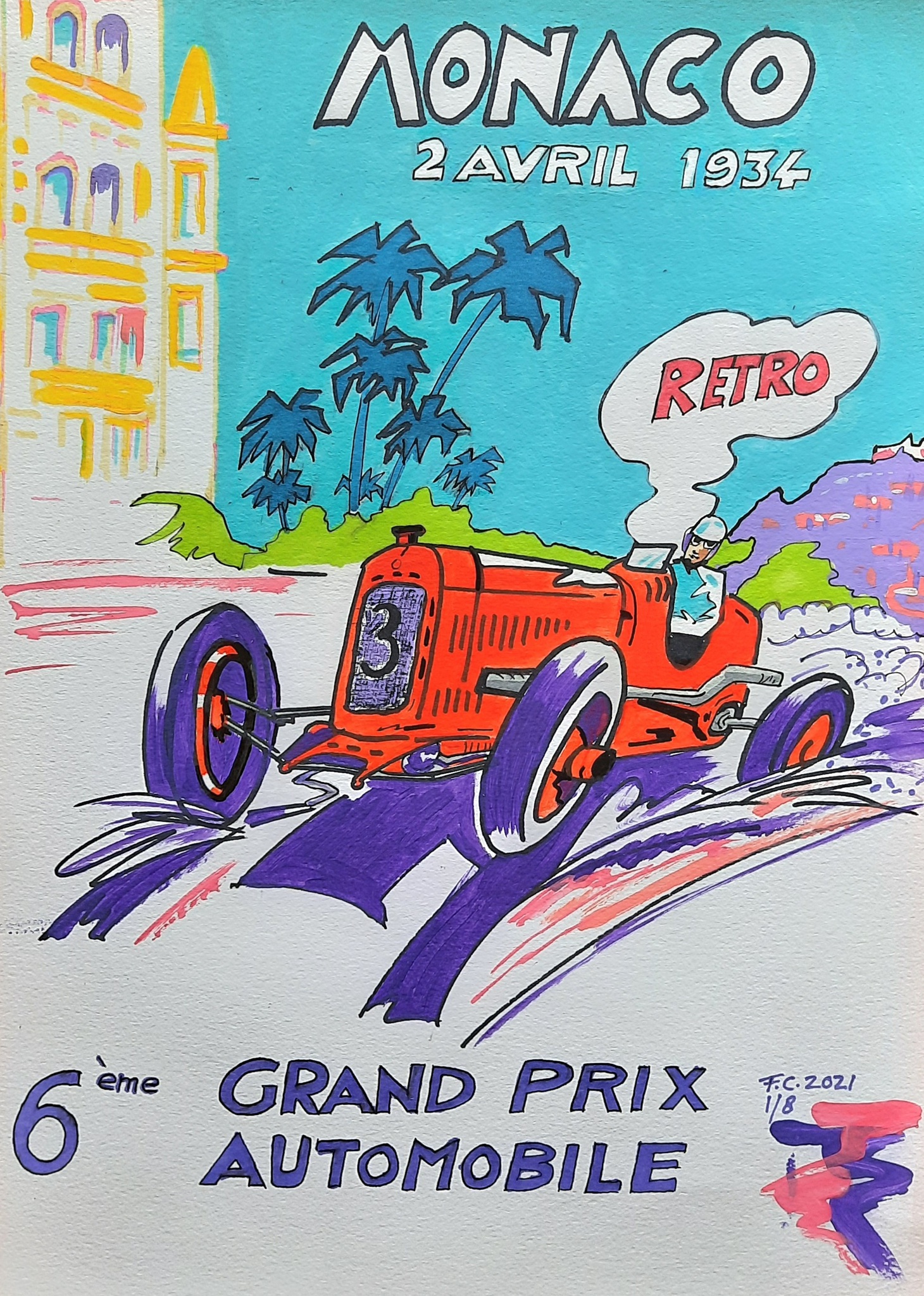 Mixed Media Frankrijk Retro Race Popart Monaco Raceauto 1934