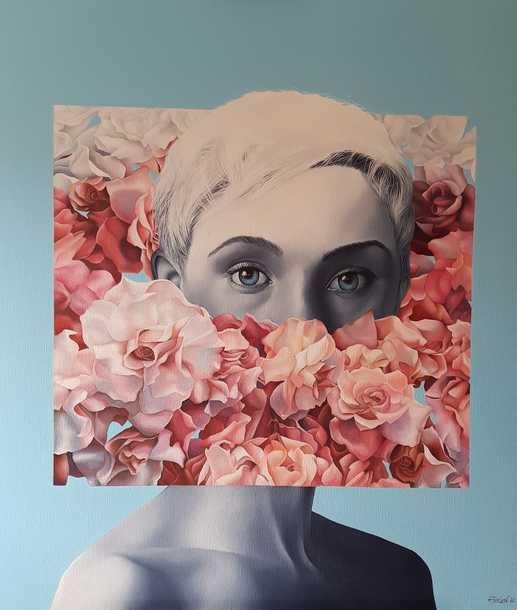 Vrouw met masker van bloemen Olieverf en Alkyd. Verkrijgbaar als giclée (print op linnen) www.tresart.nl