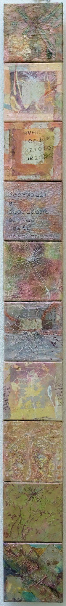 combinatie van 10 verschillende kunstwerkjes rond het wegwaaien van zaadjes