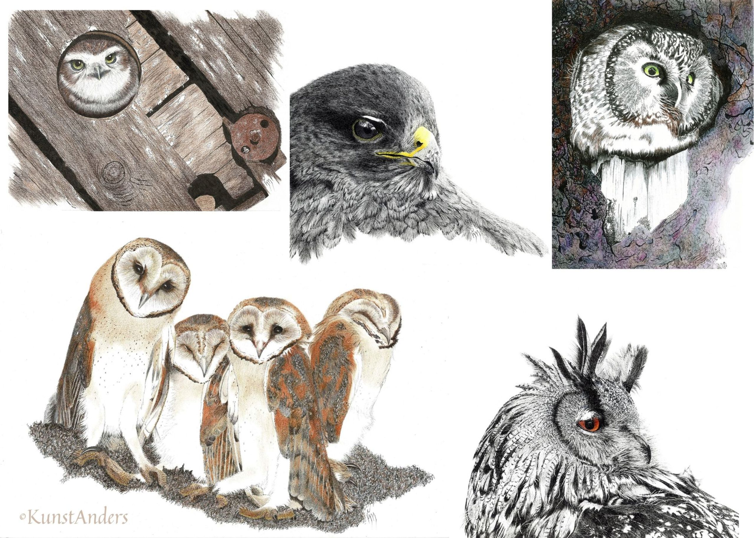 Roofvogel Tekening Natuur Vogels Uilen Kerkuil Oehoe Pentekening Buizerd Steenuiltje Placemat Kunstanders Ruigpootuil Lente