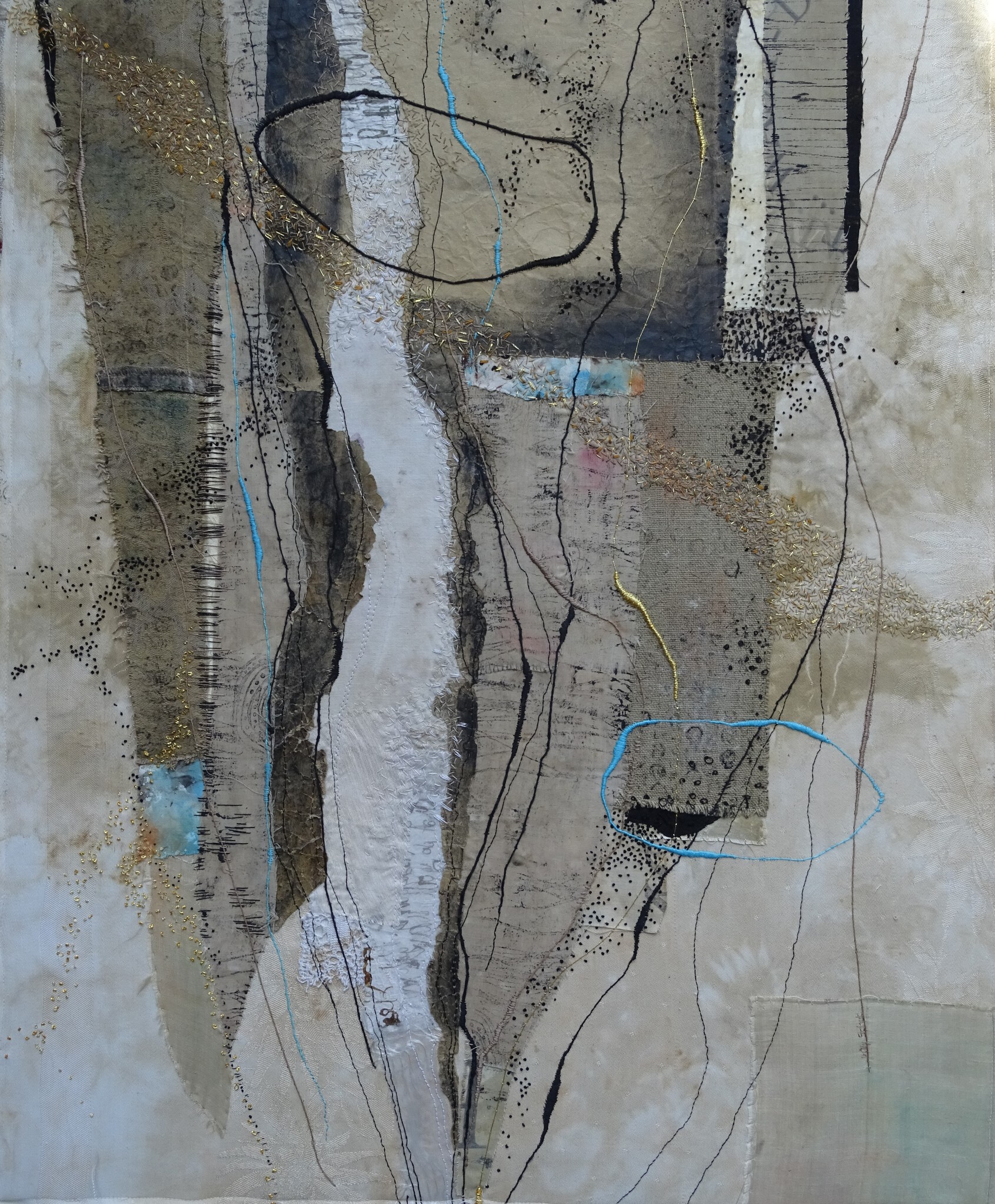 Mixed media o.a. bewerkte stof, papier en handborduurwerk