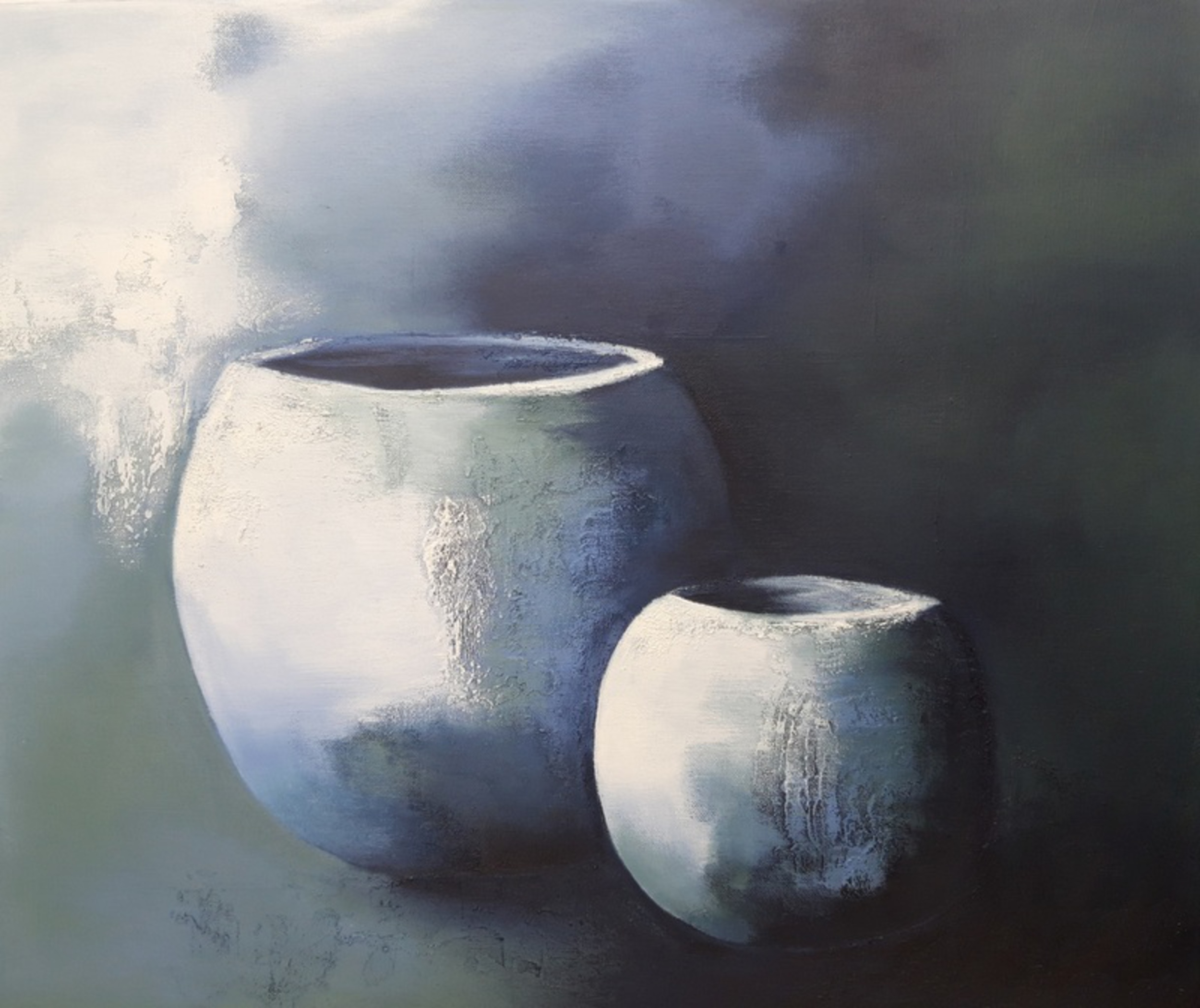 Potten Blauw Groen Mixed Media