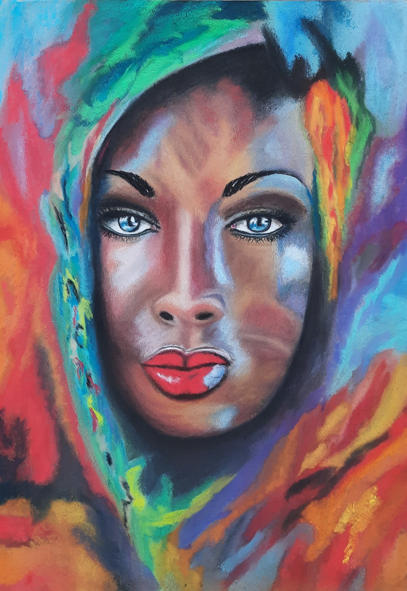 Deze mooie dame is kleurrijk, ingelijst met passe partout