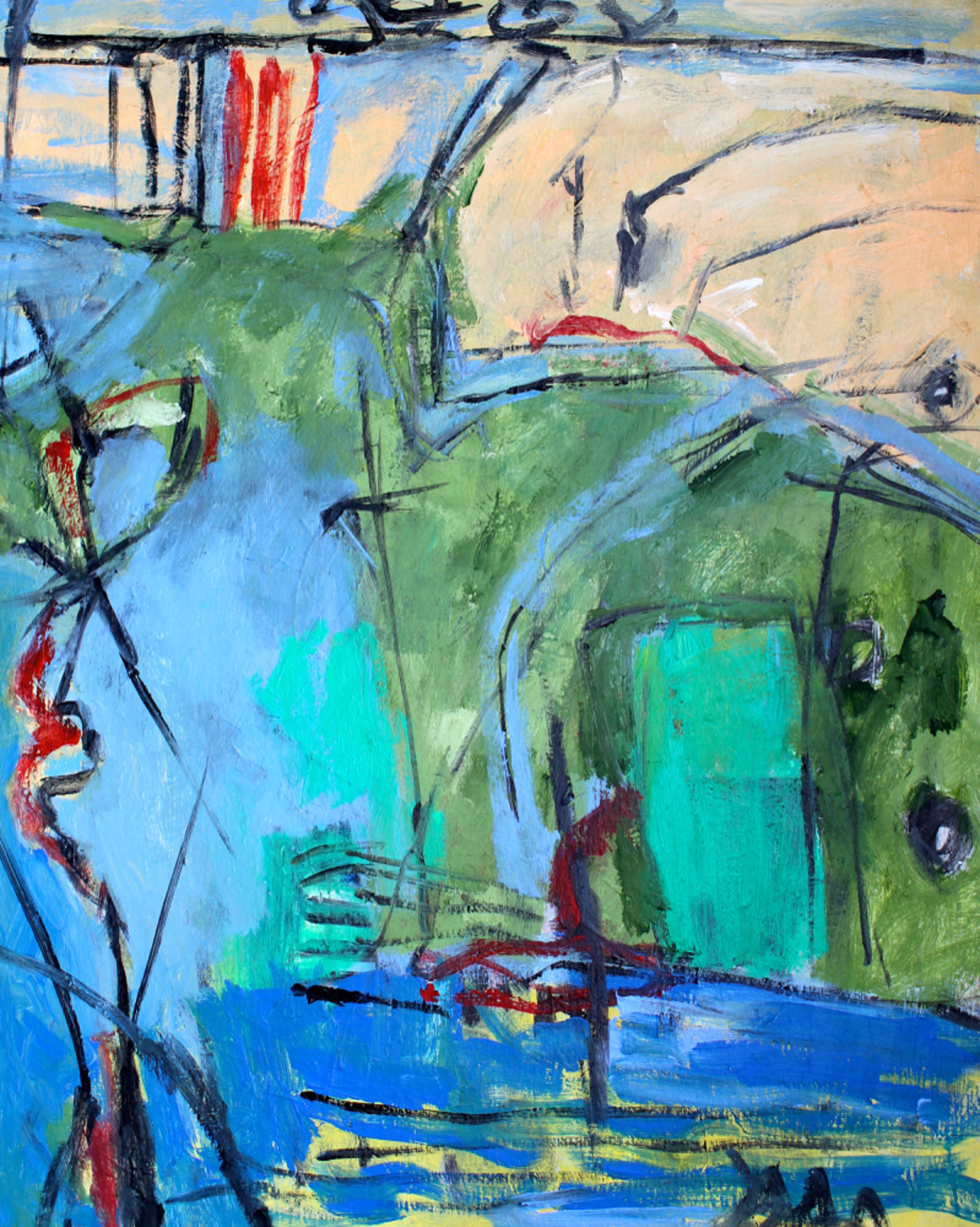 Mijn schilderijen komen tot stand door uit te gaan van een bepaald idee, of een bepaald beeld dat ik voor ogen heb. Soms ga ik alleen uit van bepaalde vormen en kleuren.
