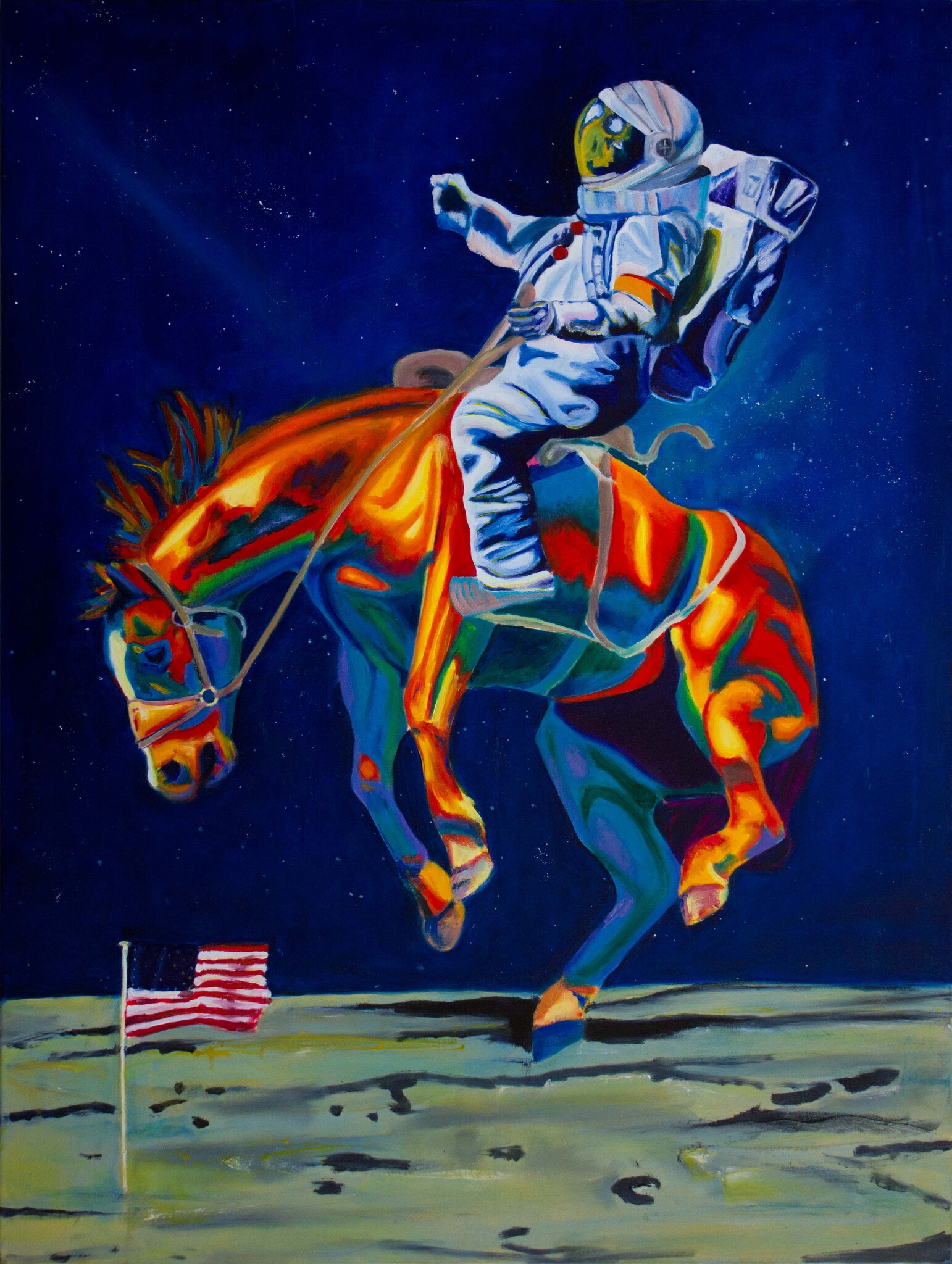 Maan Hengst Ruimte Cowboy Space Astronaut Mustang Cosmonaut