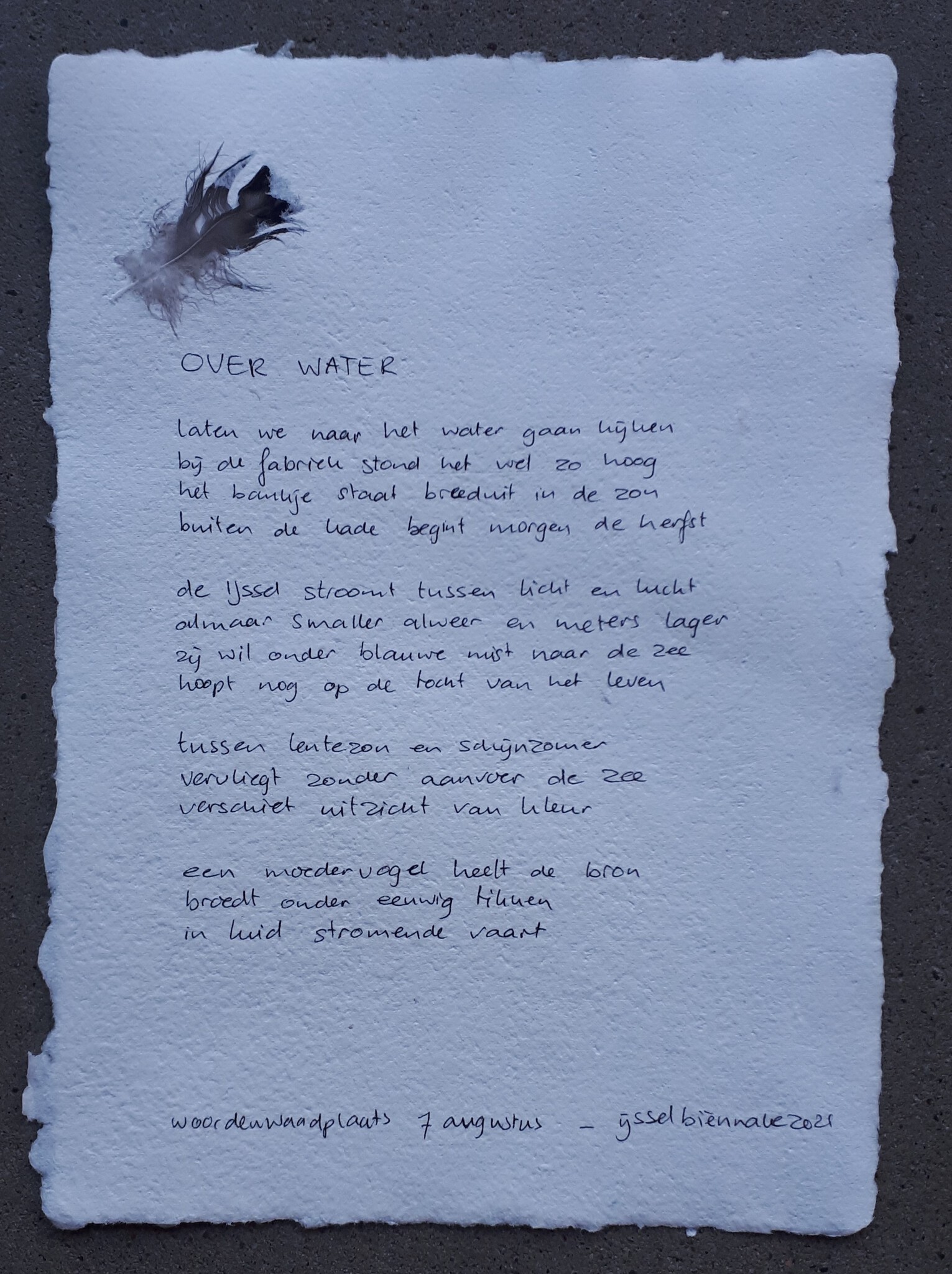 Daggedicht 8 van 7 augustus 2021 op handgeschept ijsselpapier (linnen met gejutte veer)