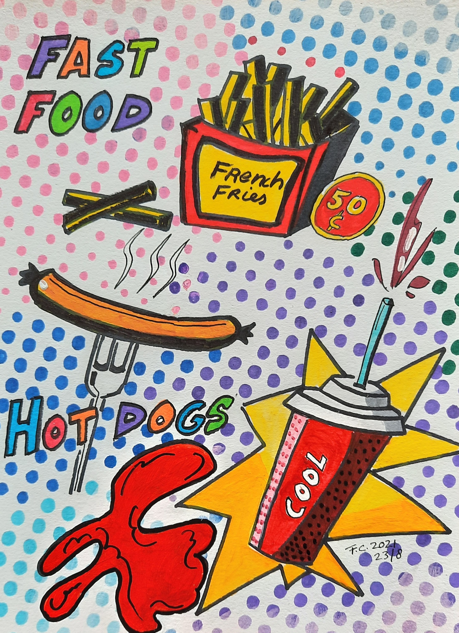 Junk Food Kleurig Ongezond Lekker Popart Mixed Media