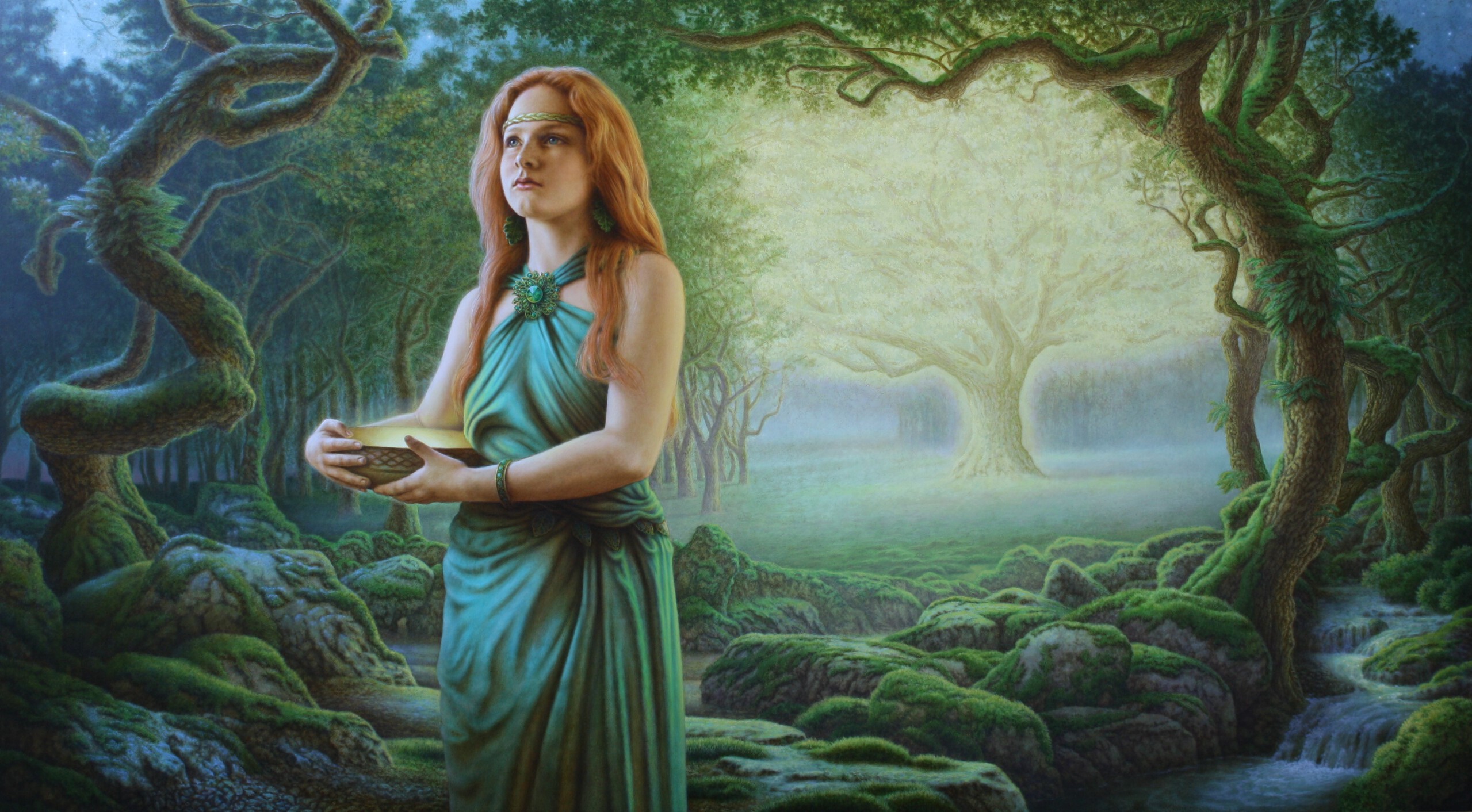 Groen Vrouw Bomen Realisme Symbolisch Forest Pagan Keltisch