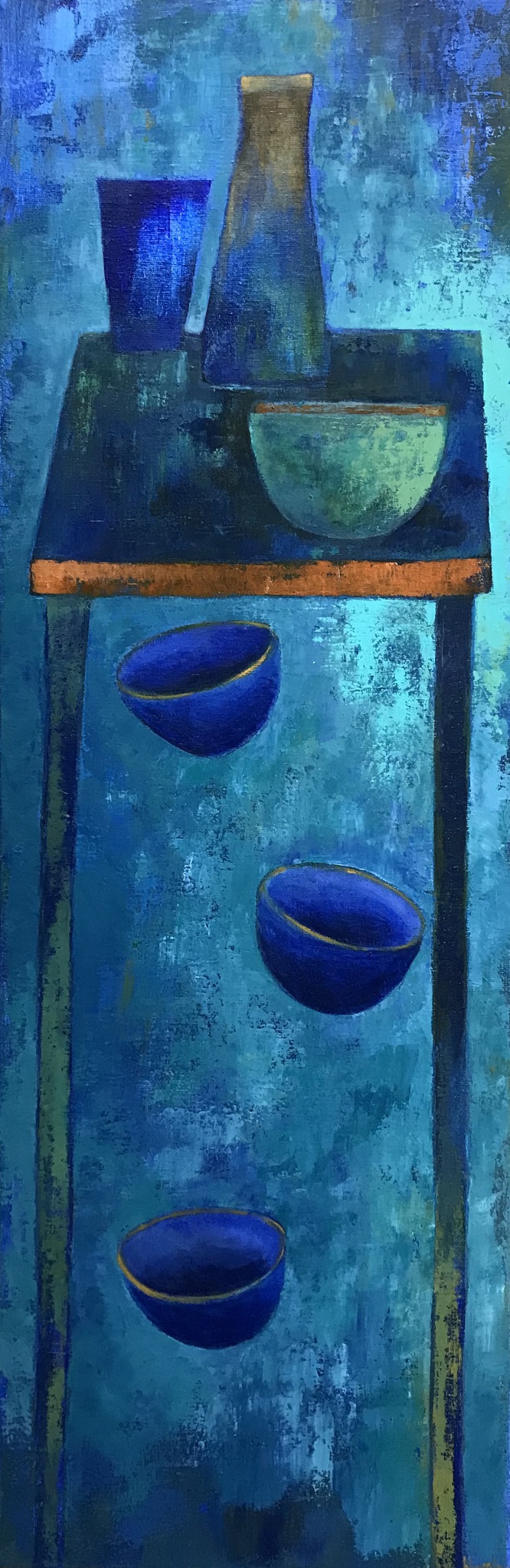 Hoge tafel met vallende kommen. In opdracht.