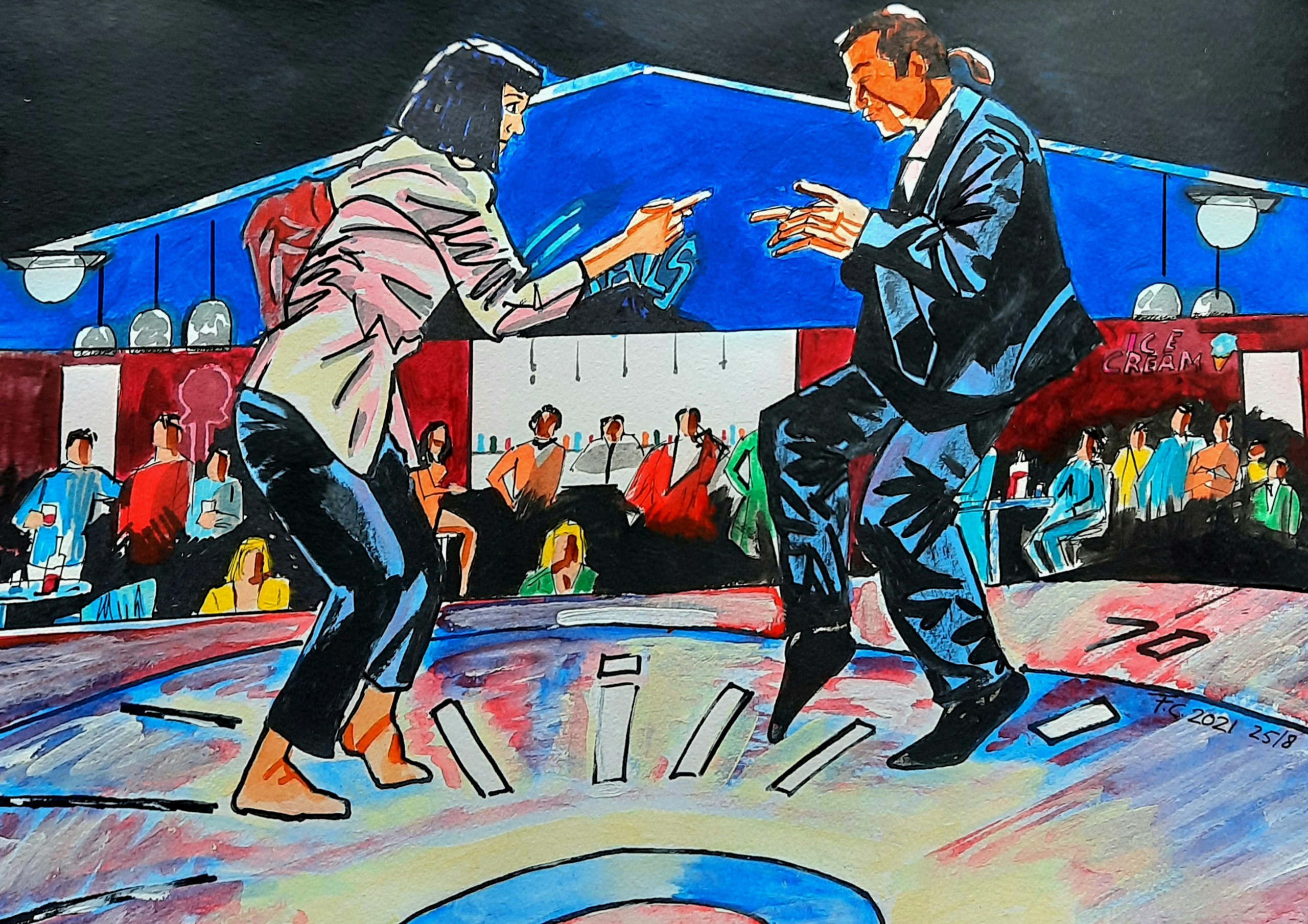 Mixed Media Dansen Fiction Popart John Pulp Dansvloer Uma Tarantino