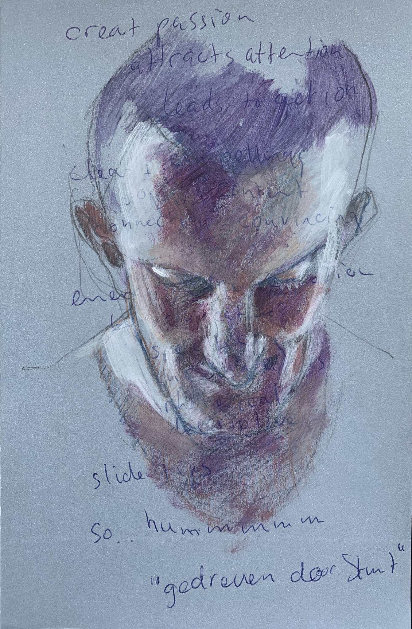 Mijn Notebook Portraits zijn snel gemaakte portretjes met potlood, balpen en/of acrylverf gemaakt op papier van oude notitieblokken die ik voor mijn werk gebruikt heb.