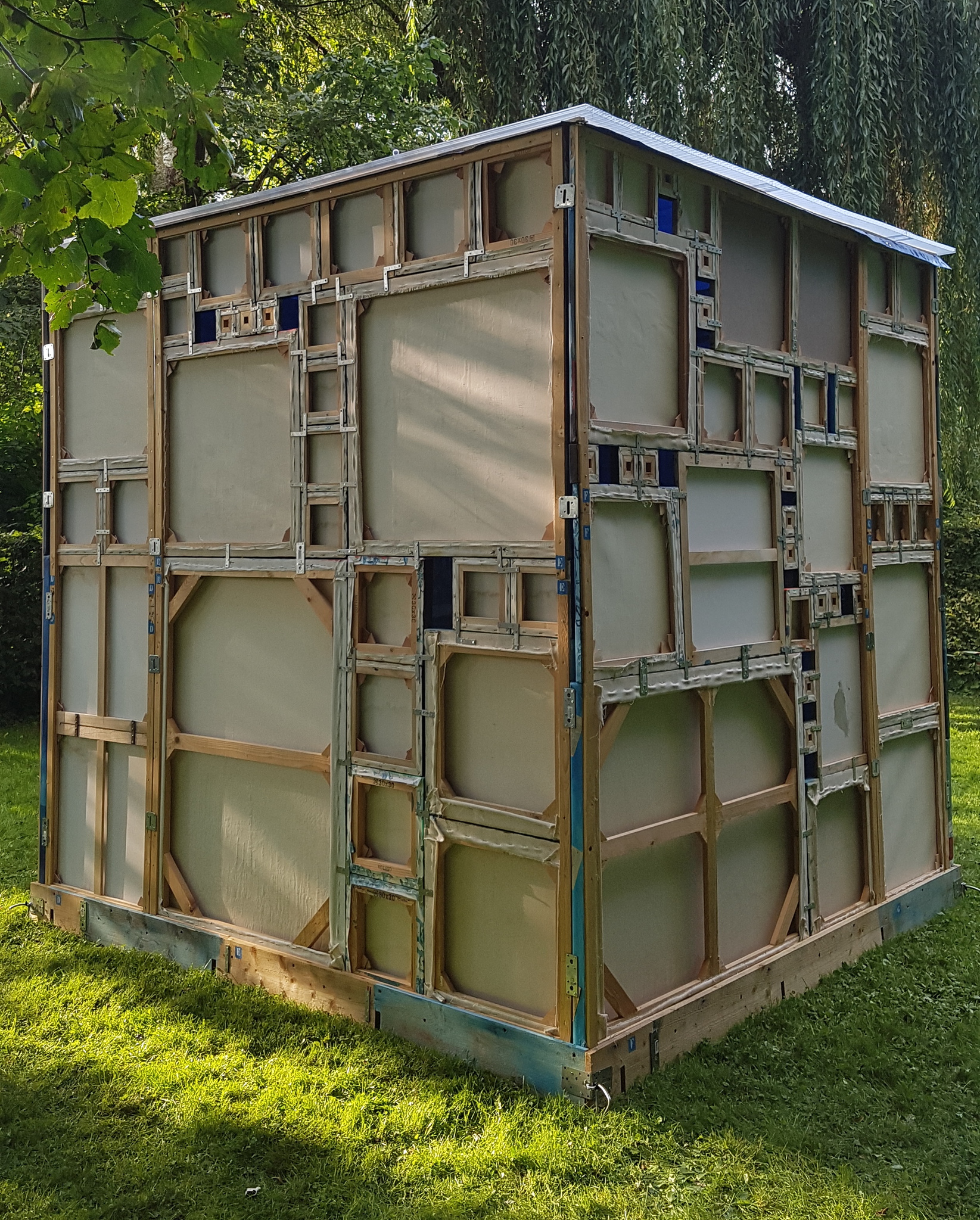 Het blauwe uur, het schemer-uur voordat de zon op komt en vlak voordat de duisternis invalt, dreef mij tot het maken van deze installatie. In deze follie is mijn liefde voor het hoge noorden voelbaar, evenals de blauwheid van mijn dromen en herinneringen.