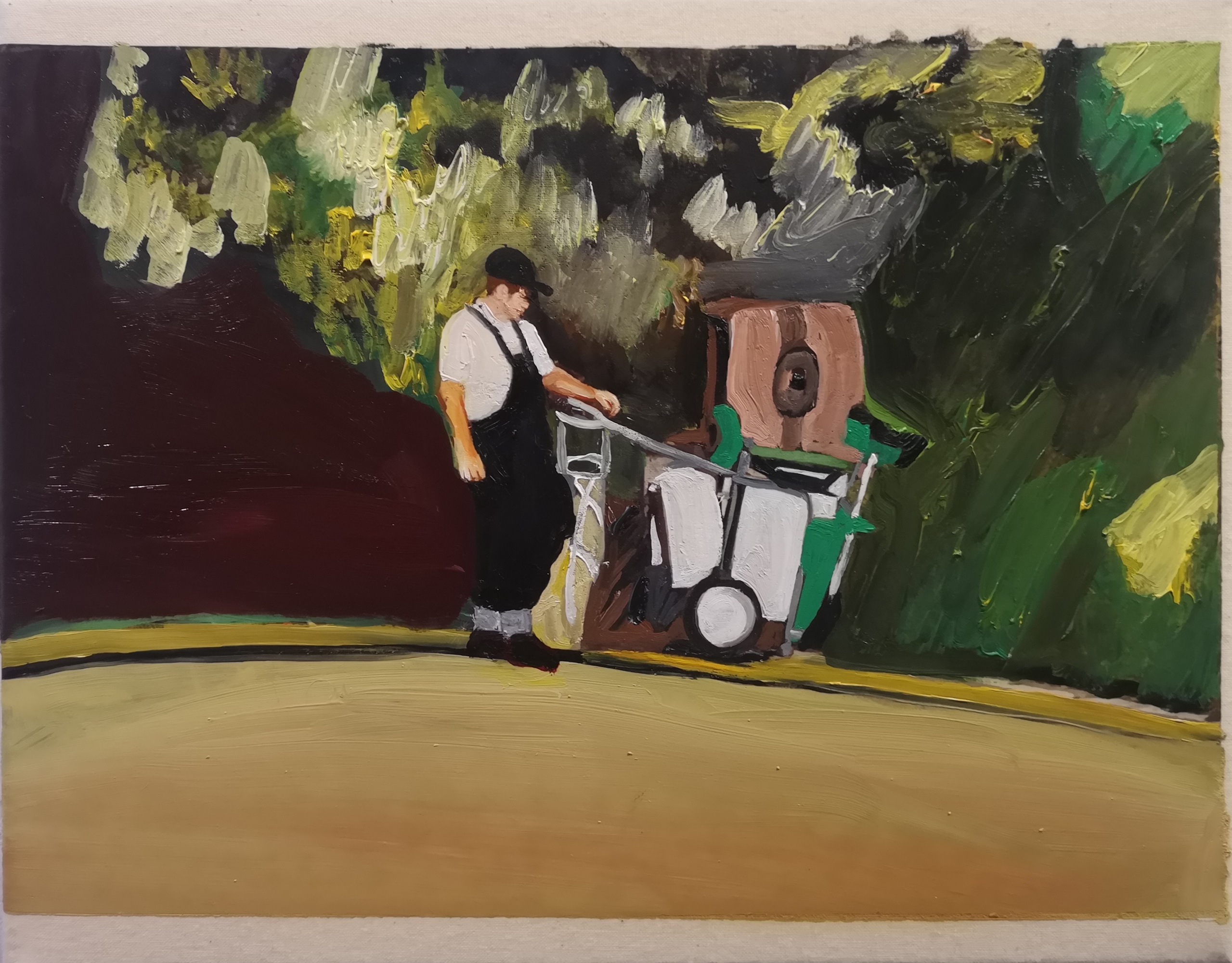Ik maak schilderijen in acryl en olieverf. Op deze schilderijen schilder ik mensen in alledaagse situaties. Zo heb ik een serie muziekkorpsen. Vakantiegangers maar ook een man met een afstandsbediening een kind op een paard. Het is een soort vertraagd dagboek verslag van mijn belevenissen.
