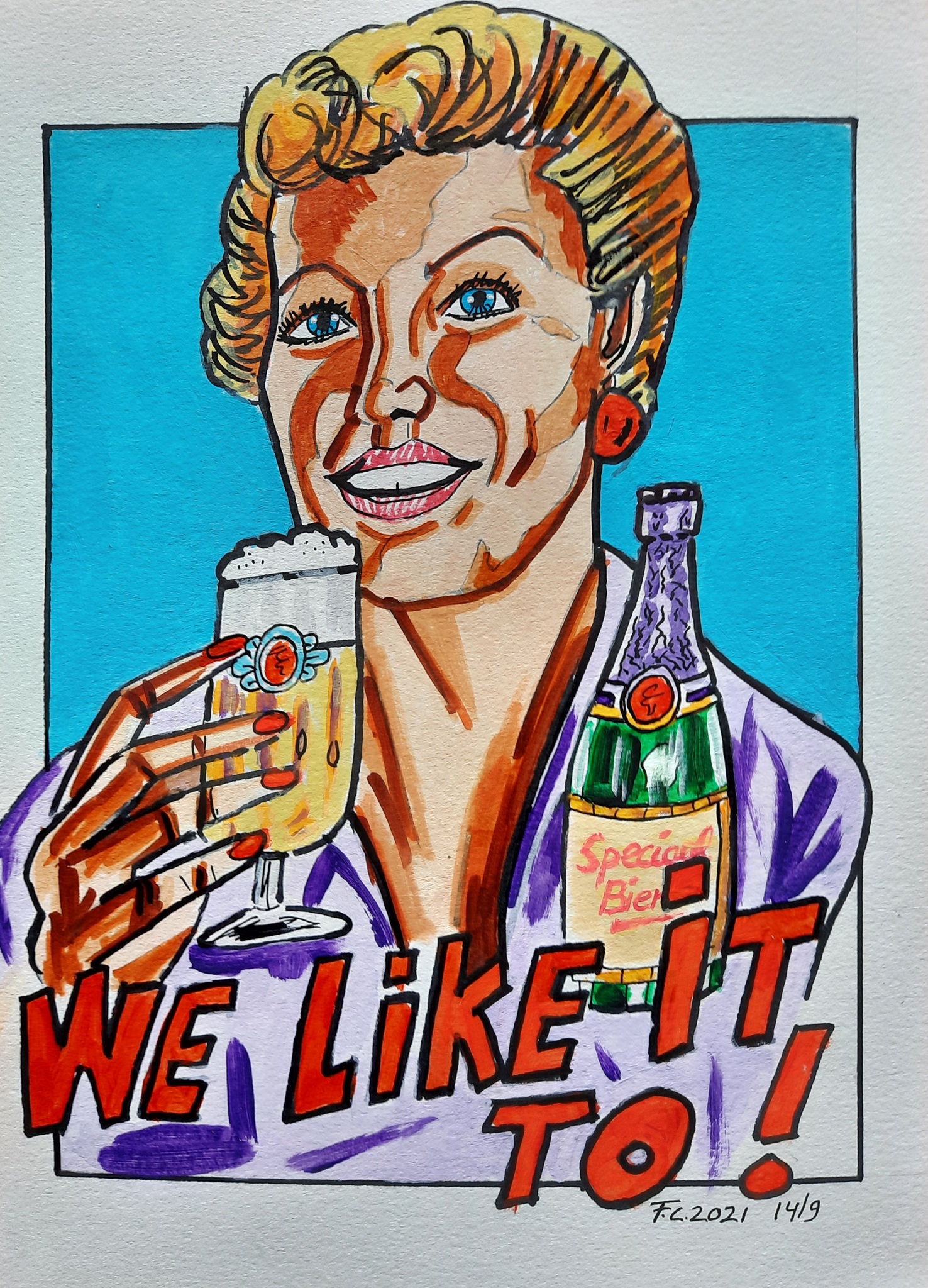 Vrouwen Mixed Media Bier Retro Drinken Popart