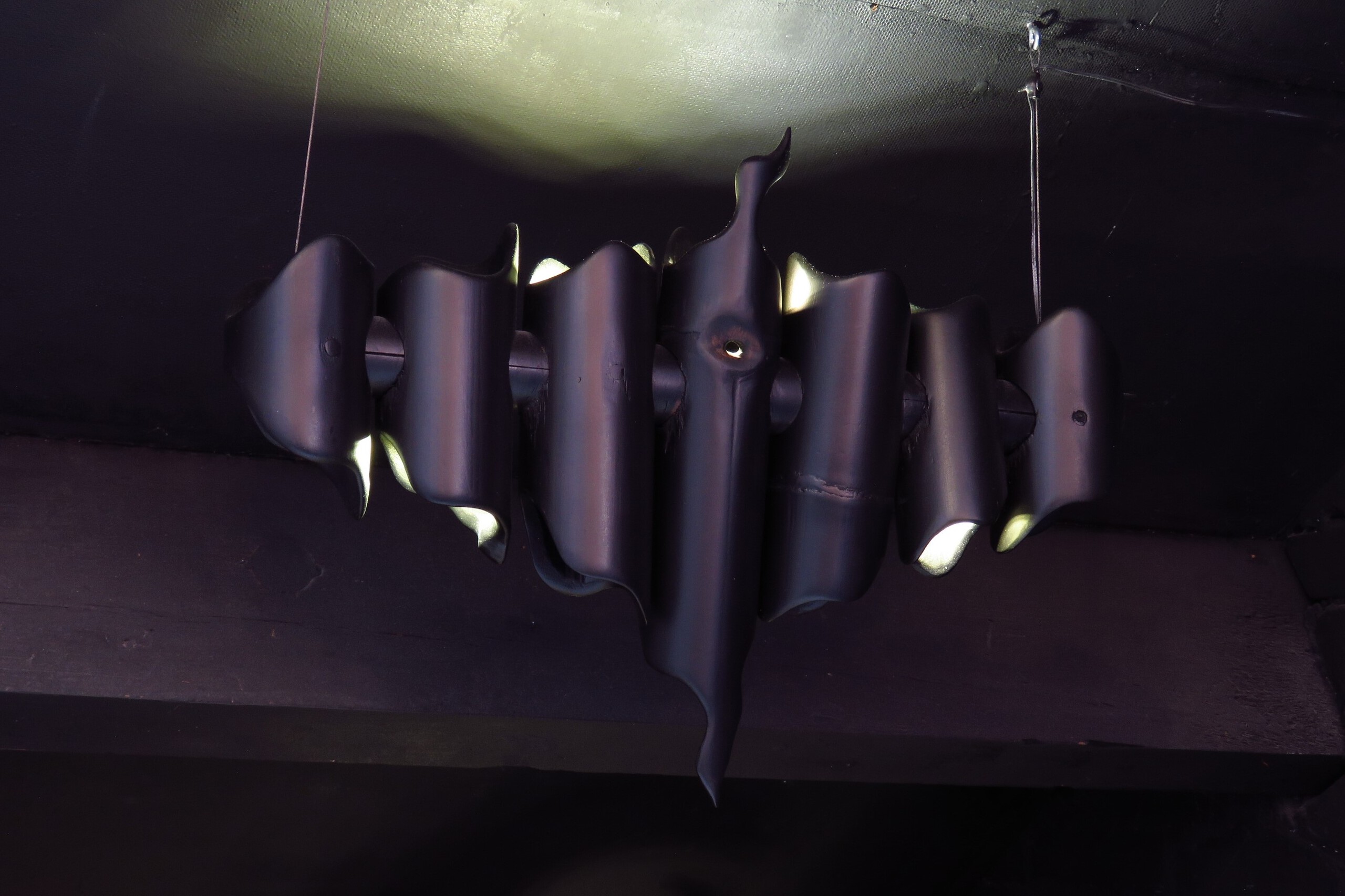 ZWARTE GEEST een sliert van rook. Ik heb deze lamp gemaakt van Java Zwart Bamboe. Eerst bestudeerde en voelde ik de bamboe met mijn hart, volgde zijn natuurlijke vorm schetste ik mijn droom erop. Daarna gebruikte ik Dremel en andere soortgelijke gereedschappen om hem te snijden en te schuren. Ten slotte heb ik hem geverfd en gevernist. Na wilde artistieke werken verbond ik de elektriciteit met professionele kwaliteit. Ik koos Epistar G4 led lampen om het beste warmwitte licht te geven, en een V-TAC EU-stekker met IP44-classificatie voor de veiligheid in huis.