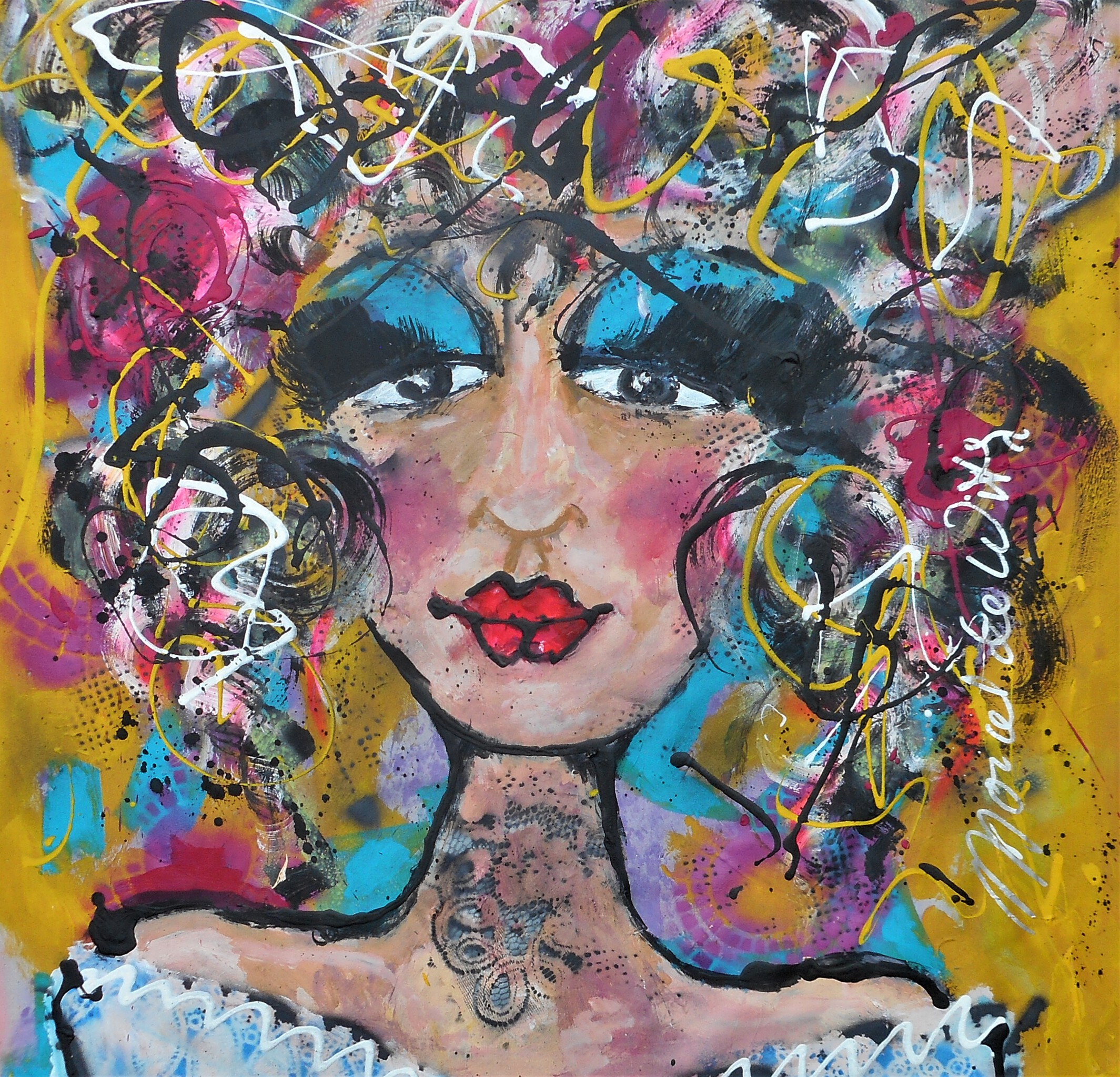 Marcel de With,(Sneek 1964). Marcel schildert graag met veel kleur voor een warme en vrolijke uitstraling.Hij gebruikt regelmatig vrouwen als thema die hij in een klassieke sfeer schildert,maar dan wel met een rauwe kant.