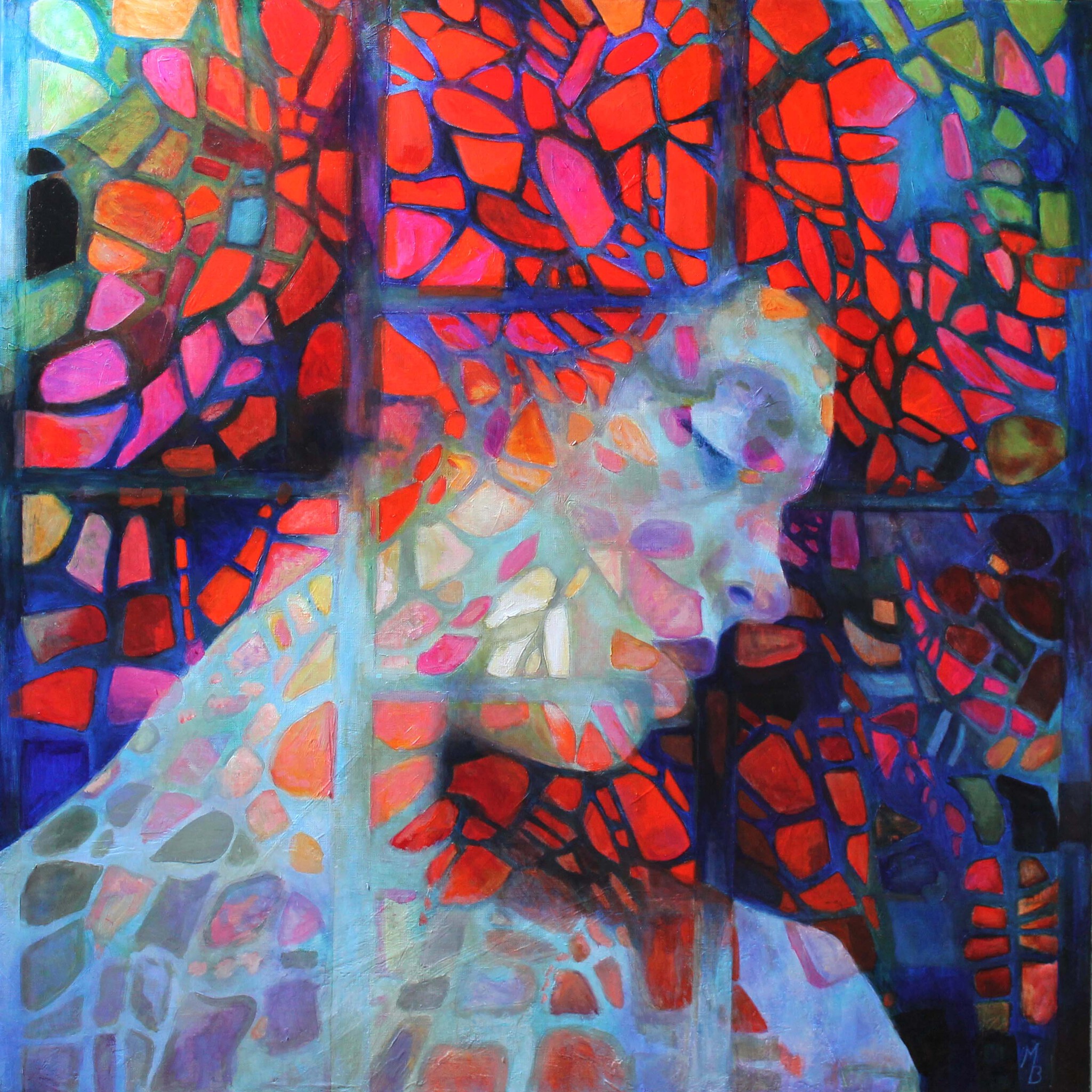 Meisje Rood Vrouw Portret Woman Portrait Red Dromen Dreams Girl Kleur Glasinlood Colour Glass Stained
