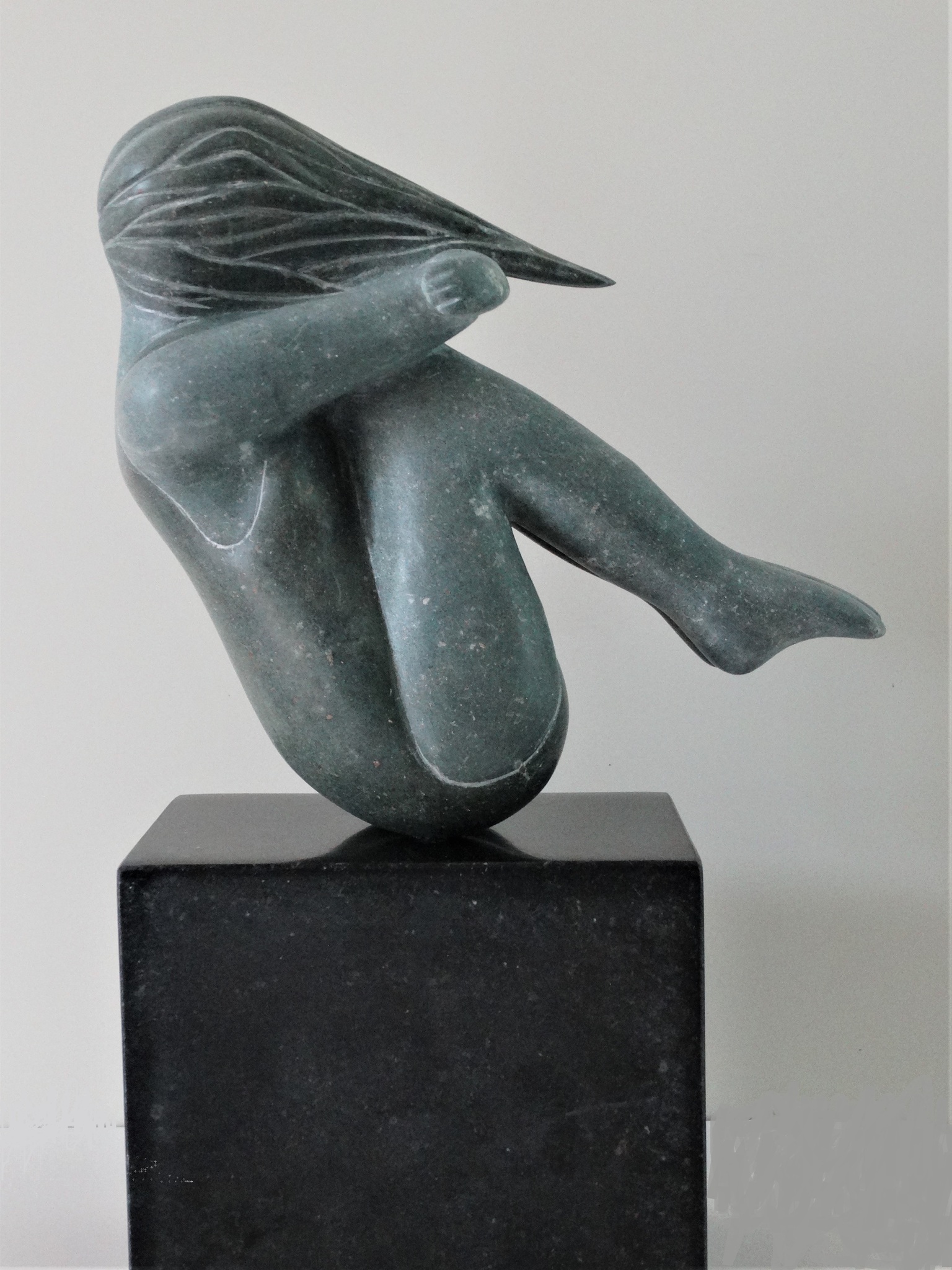 Figuratief Groen Beeld Steen Serpentijn Schoonspringen Salto