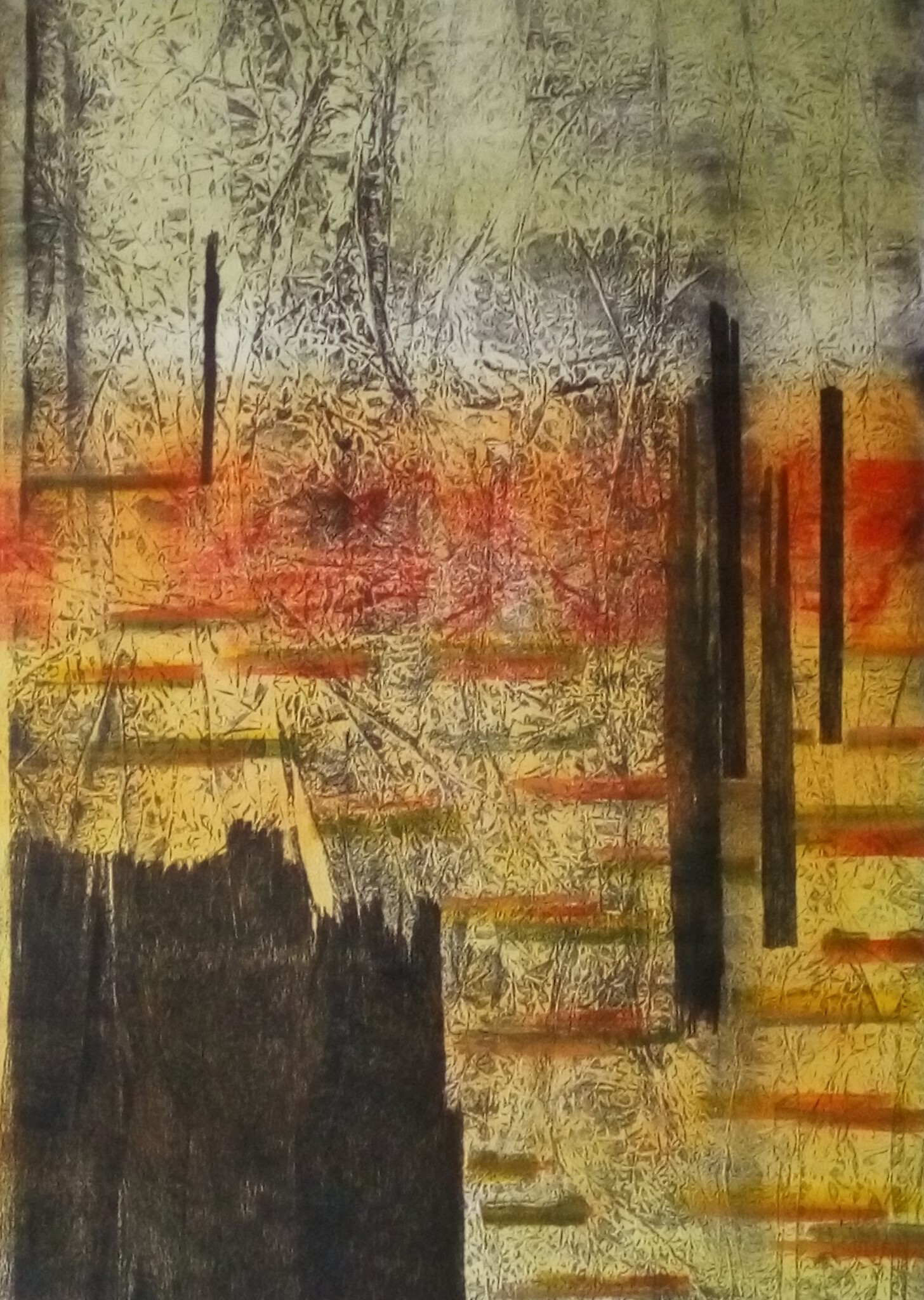 Dit kunstwerk is gedrukt met verschillende druktechnieken. Het kaderformaat 80x60 cm