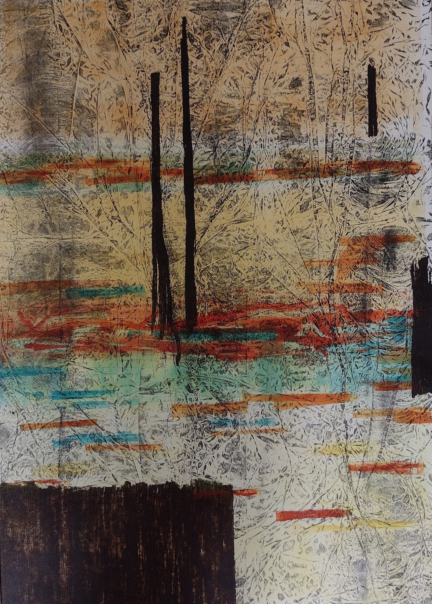 Dit kunstwerk is afgedrukt met diverse grafische druktechnieken. Kaderformaat is 80x60 cm
