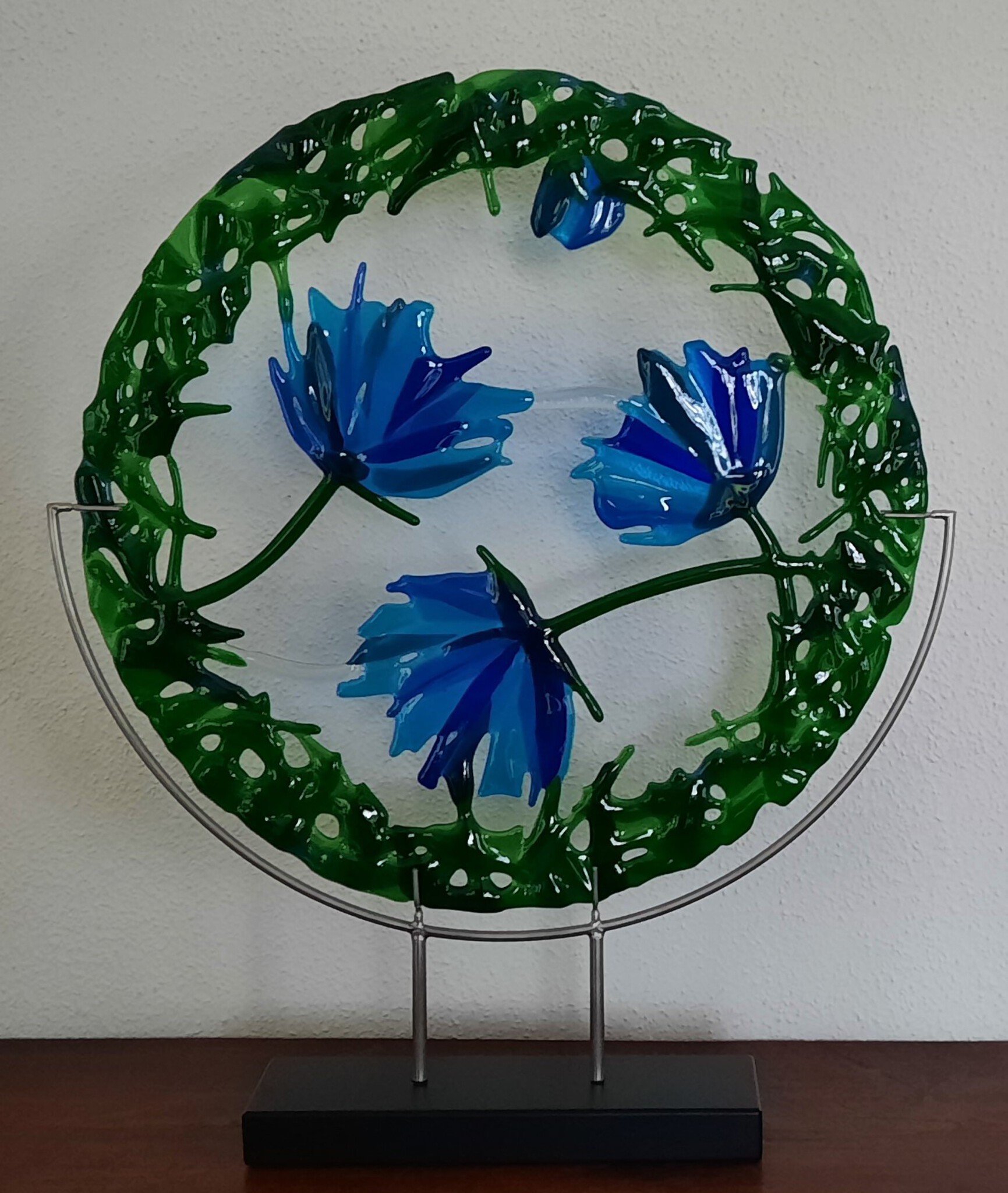 Blauw Bloemen Glas Art Blue Glaskunst Glasfusing Kunst Flowers Glasfusen