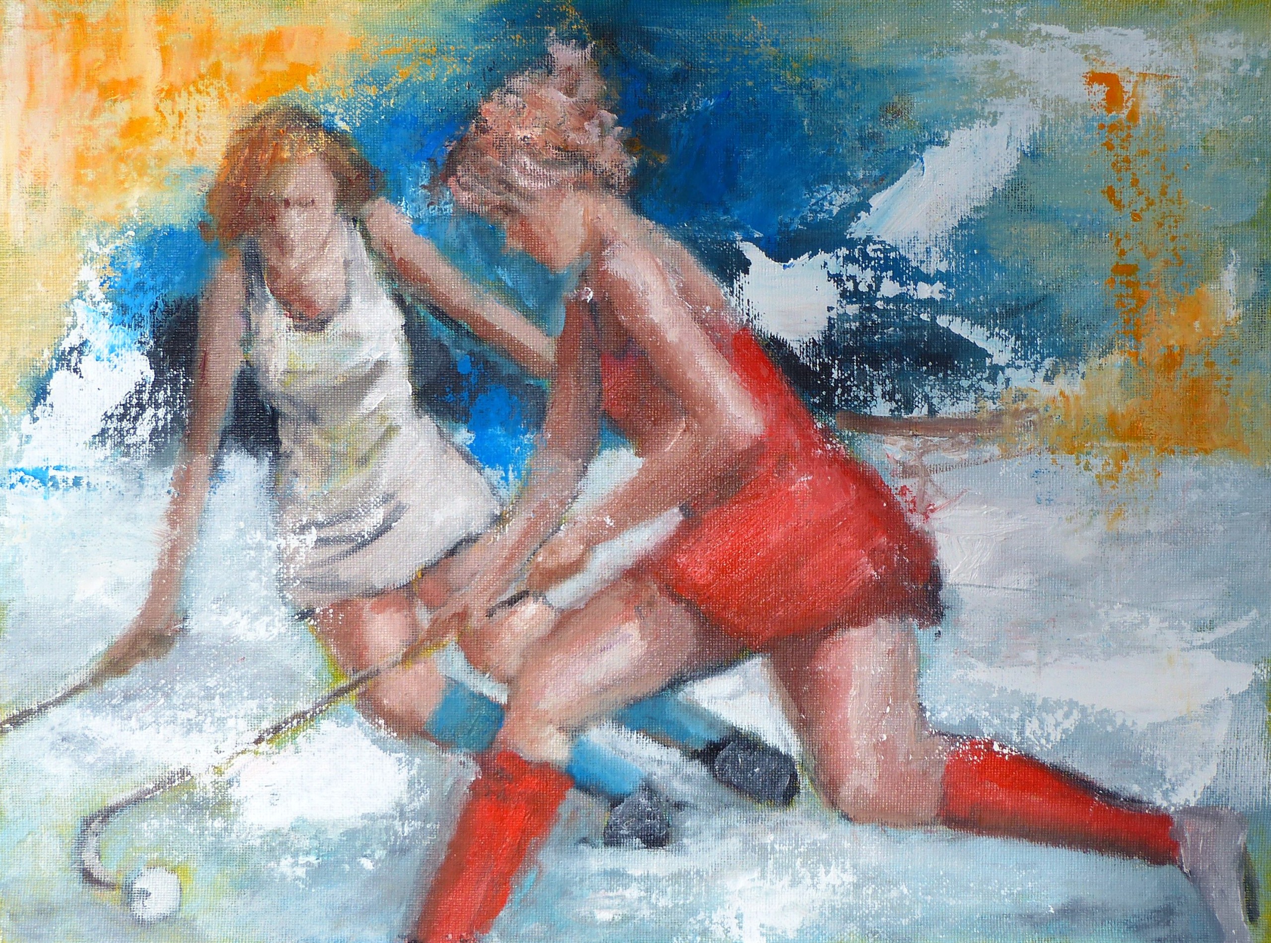 Figuratief Kleurrijk Sport Meisjes Hockey Dames Duel