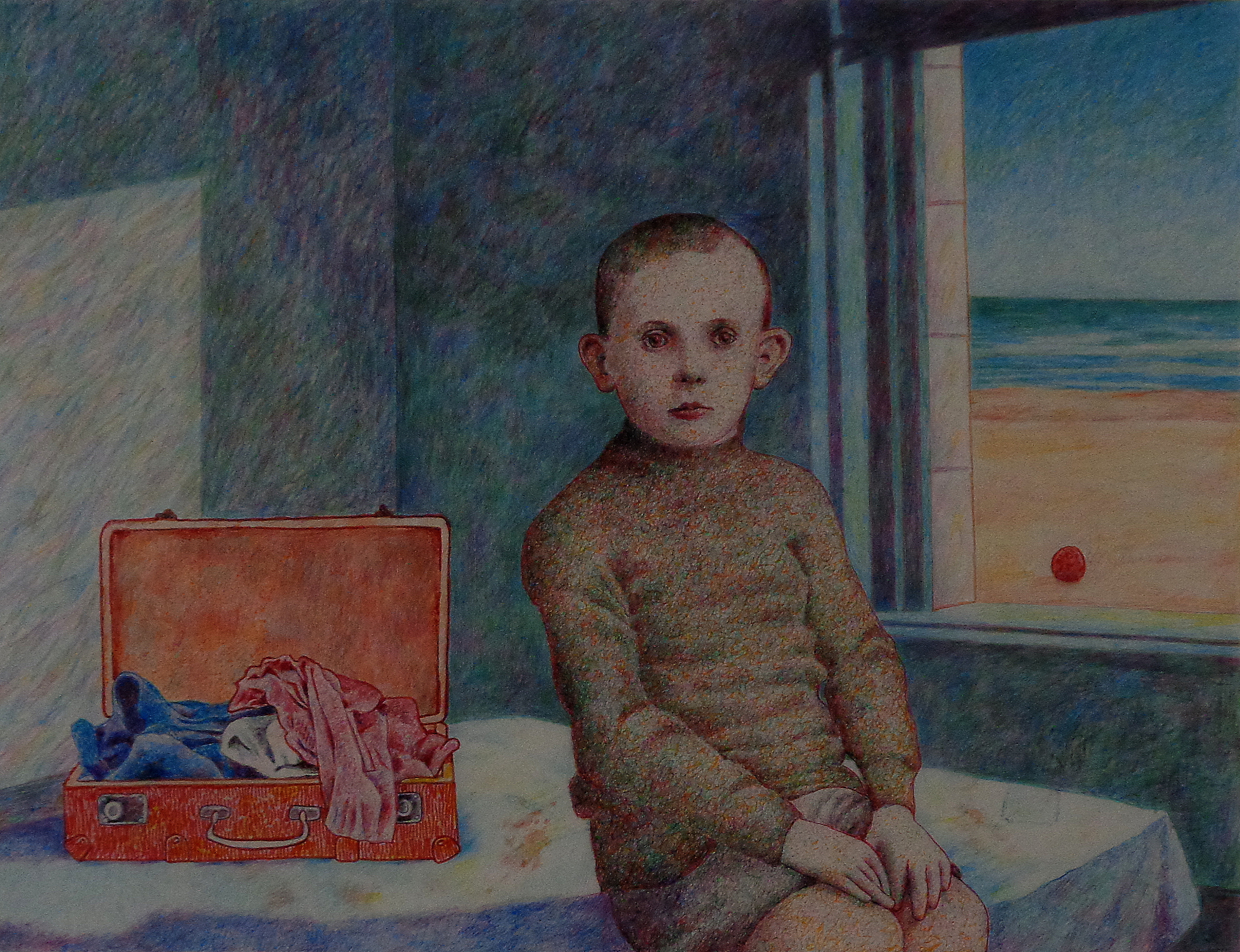 Vrij werk in ballpoint stift en kleurpotlood