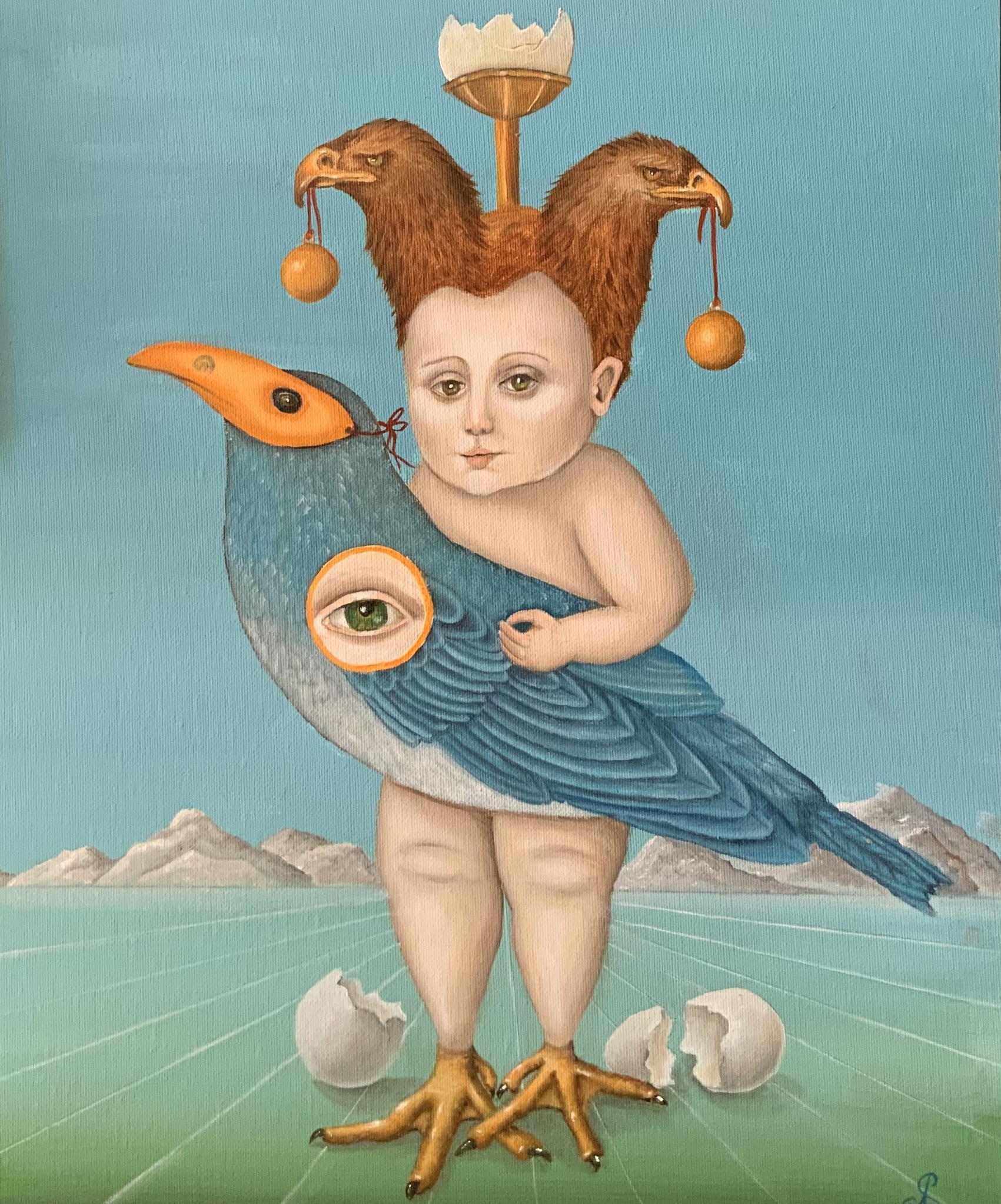 Deze hybride mens dier afbeelding is een fantasie die voor mij symbool staat voor onze verbondenheid met de natuur. De gebroken eieren staan voor hoop op een nieuw tijdperk waarin we weer beseffen dat we onderdeel zijn van die natuur. De vogel staat voor vrijheid die ons der afgelopen lockdown tijd is ontnomen. Deze afbeelding is door KUBRA art gekozen als poster voor de tentoonstelling in Rosmalen.