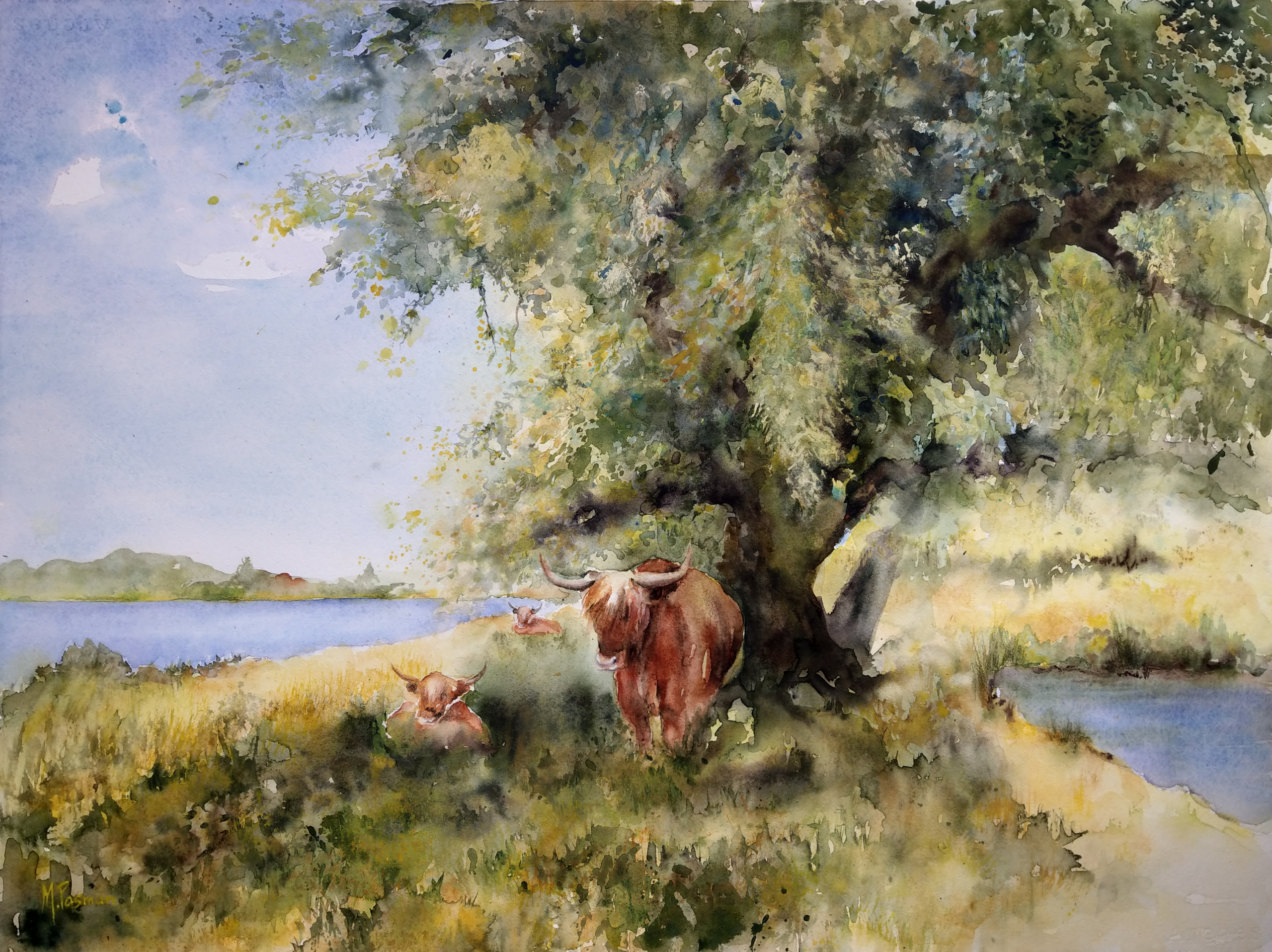 Mijn werk bestaat voornamelijk uit aquarellen die vanuit een vrije en dynamische opzet groeien tot een coloristisch schouwspel. Door laag over laag te schilderen werk ik naar verdieping en intensiteit. In afwisseling ontstaat ook spontaan werk, waarin het water een prominente rol speelt. De stijl varieert van realisme tot abstractie. Door mijn brede belangstelling en betrokkenheid bij de dagelijkse dingen zijn mijn onderwerpen ook heel divers; vaak werk ik thematisch.