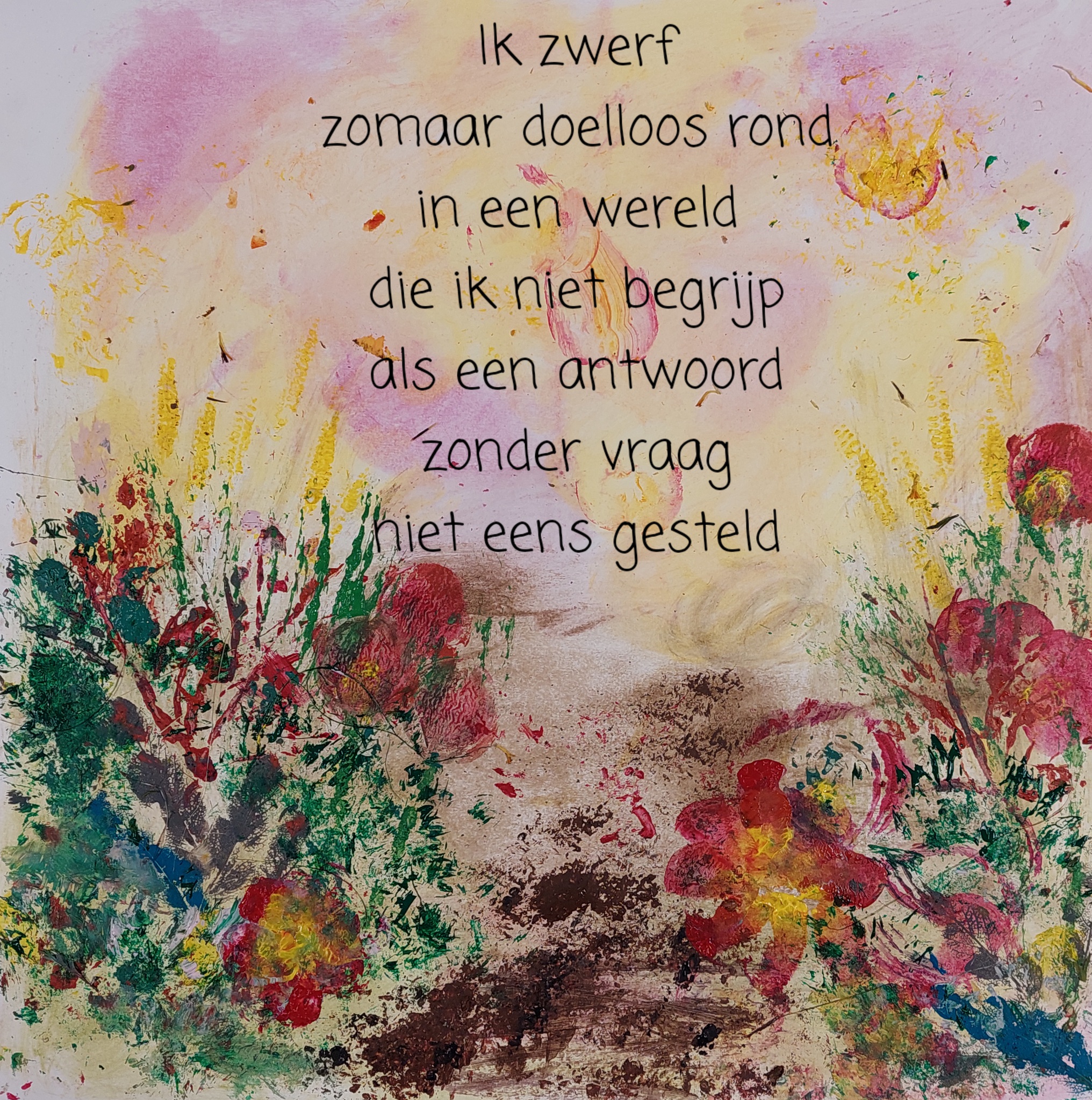 Sinds enkele jaren schilder ik vanuit mijn hart, intuitief ontstaan soms heel bijzondere elementen in mijn werk. Aan mij om dat wat verschijnt de aandacht te geven en het geheel te verbinden.