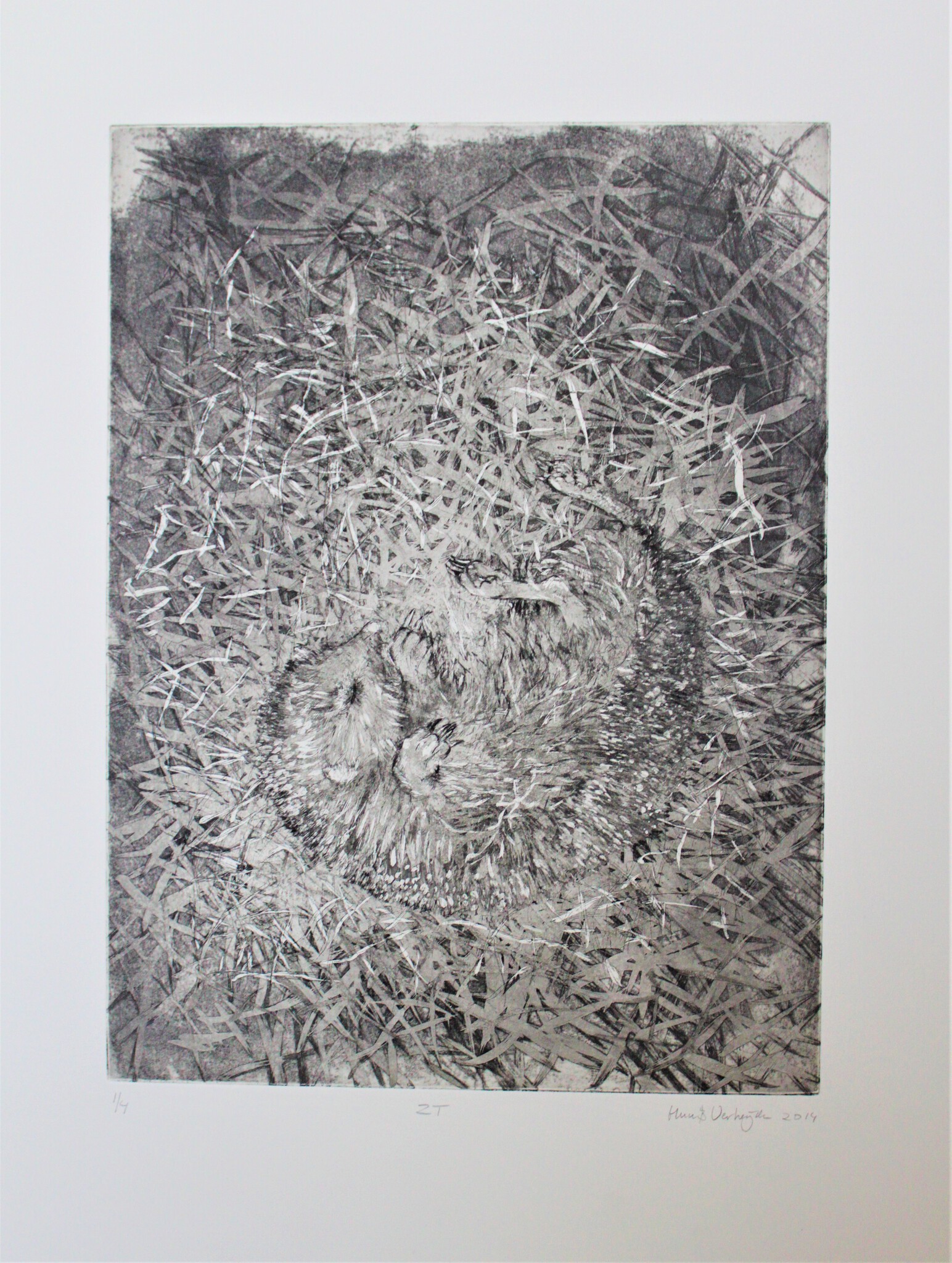 Als graficus werk ik voornamelijk figuratief in de technieken houtsnede, ets en mezzotint. Poëzie, het absurde, humor, mysterie en een fascinatie voor wat mogelijk is binnen kaders, spelen een rol in mijn werk.