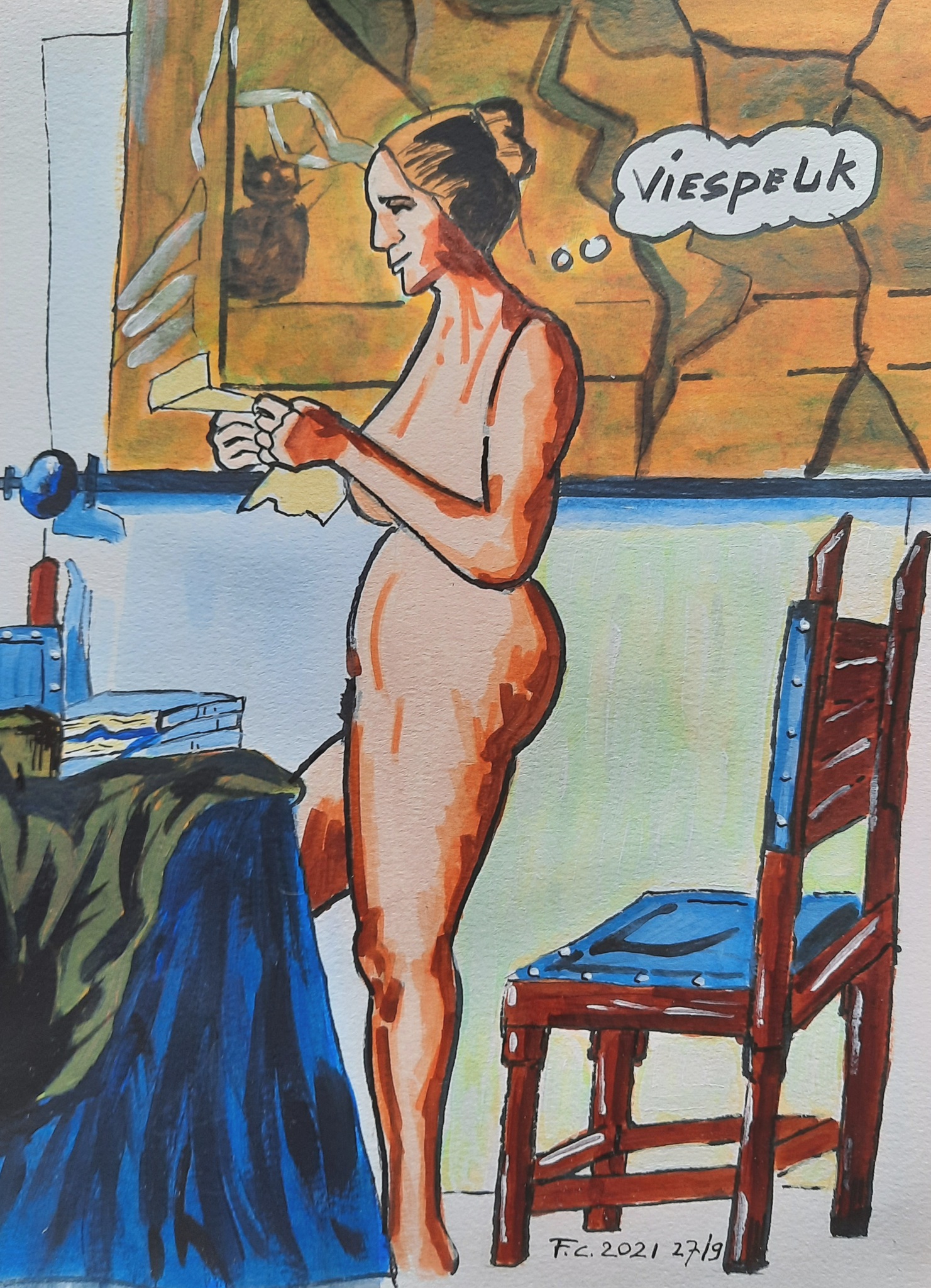 Schilderij Vrouw Naakt Mixed Media Vermeer Brief Popart Johannes Lezende Erotiek