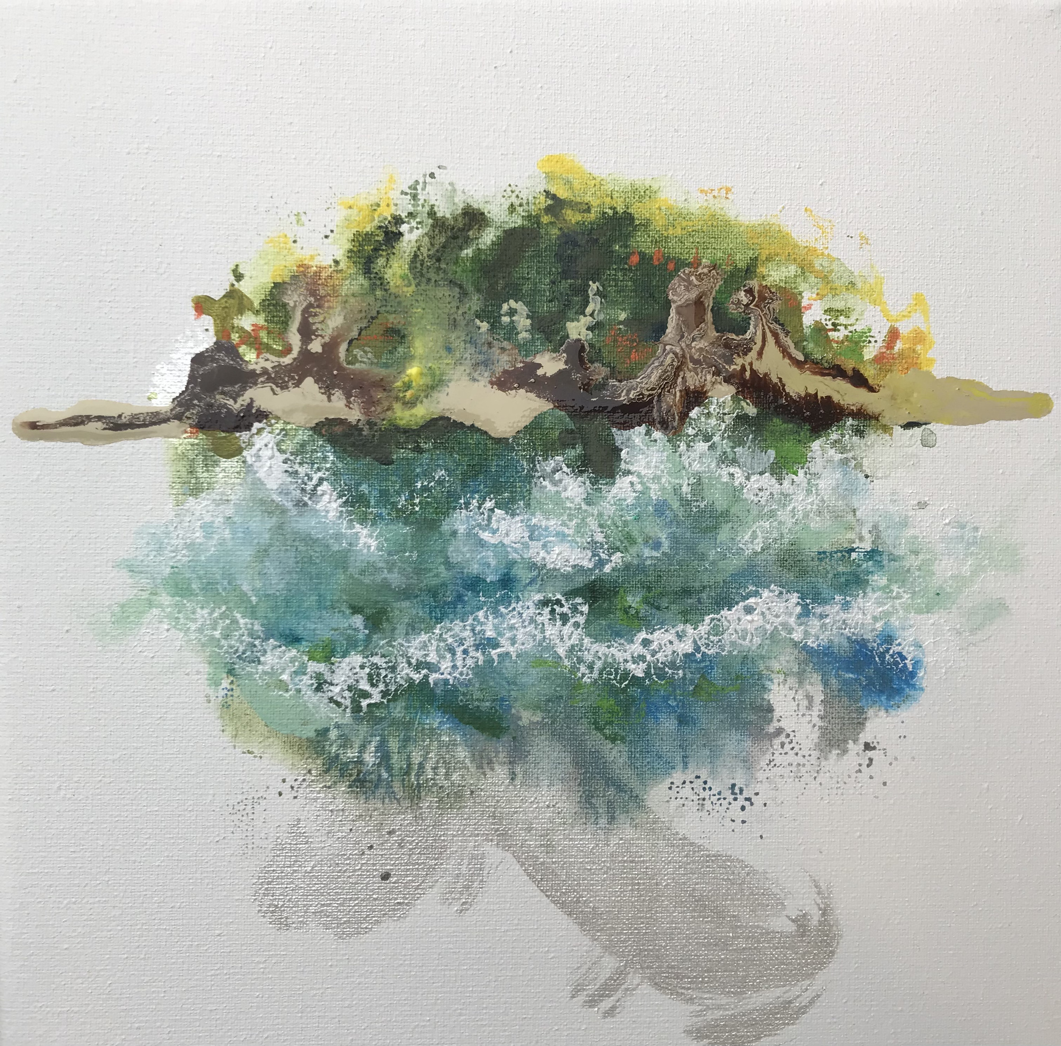 Mixedmedia op doek.