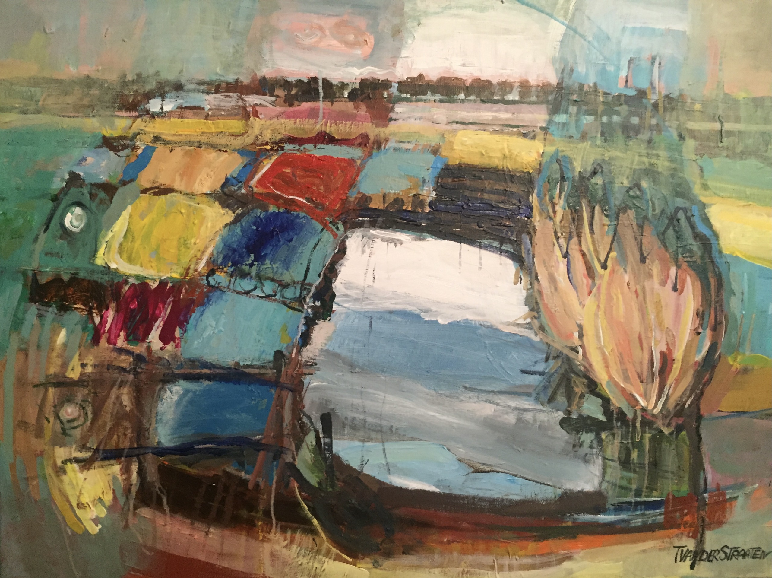 Landschap Acryl Kleurrijk Doek Abstraherend Polder
