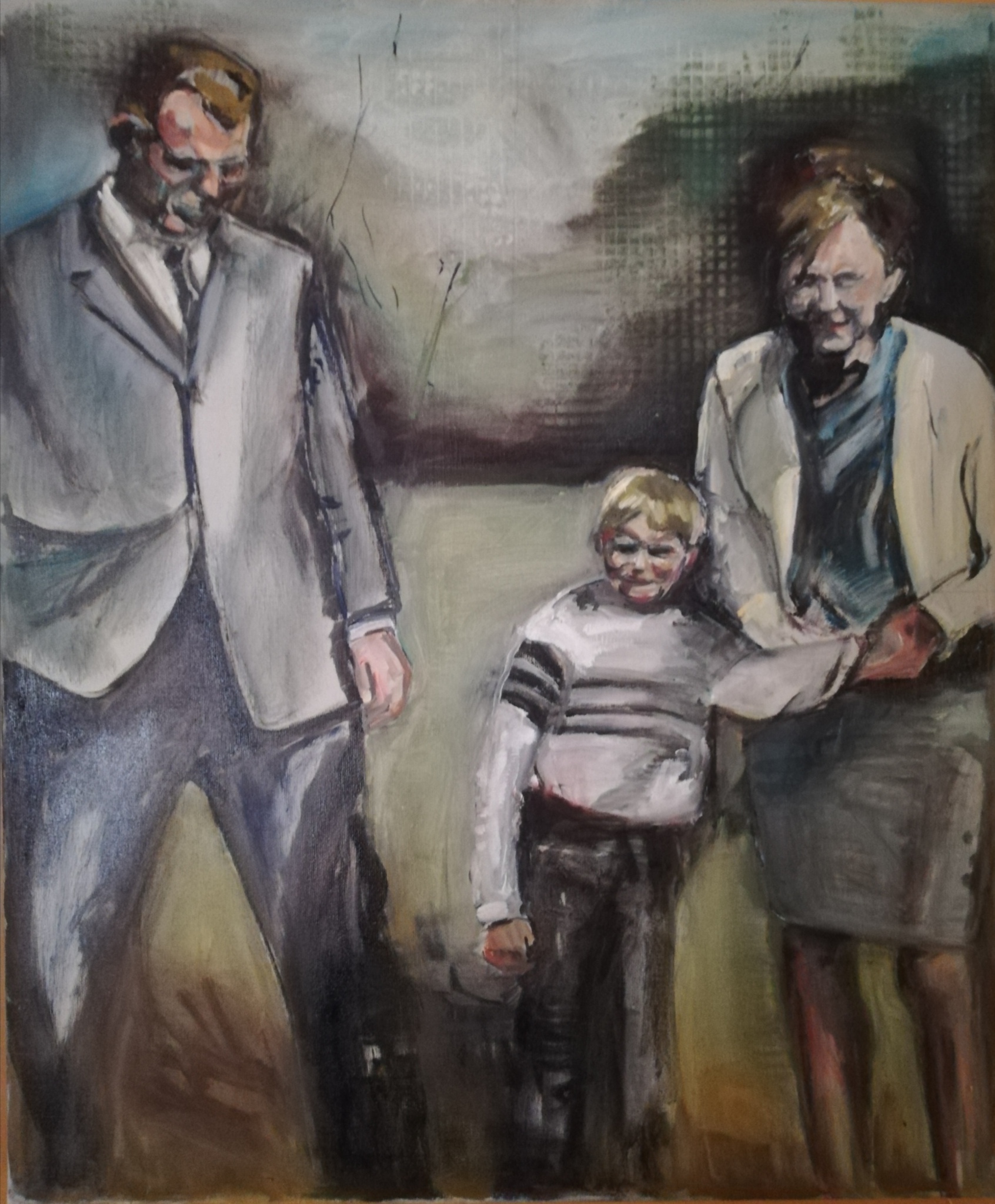 Och wat was Johanneke gelukkig met zijn nieuwe trui, dat was een foto waard... Ik heb deze iets geabstraheerd maar de jaren 70 sfeer ademt het doek nog steeds uit.