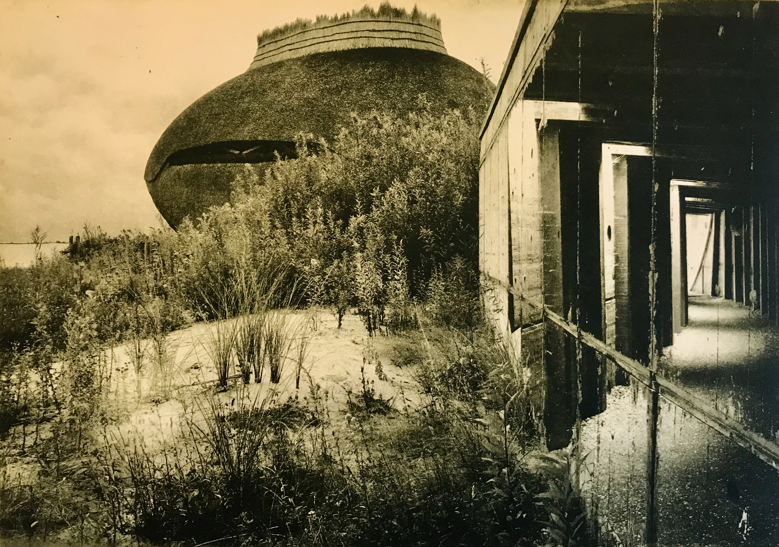 Het vogelobservatorium is te bereiken via een ondergrondse gang. Deze heb ik in mijn foto geprojecteerd op het houten schot. Achter dit schot bevindt zich de gang.