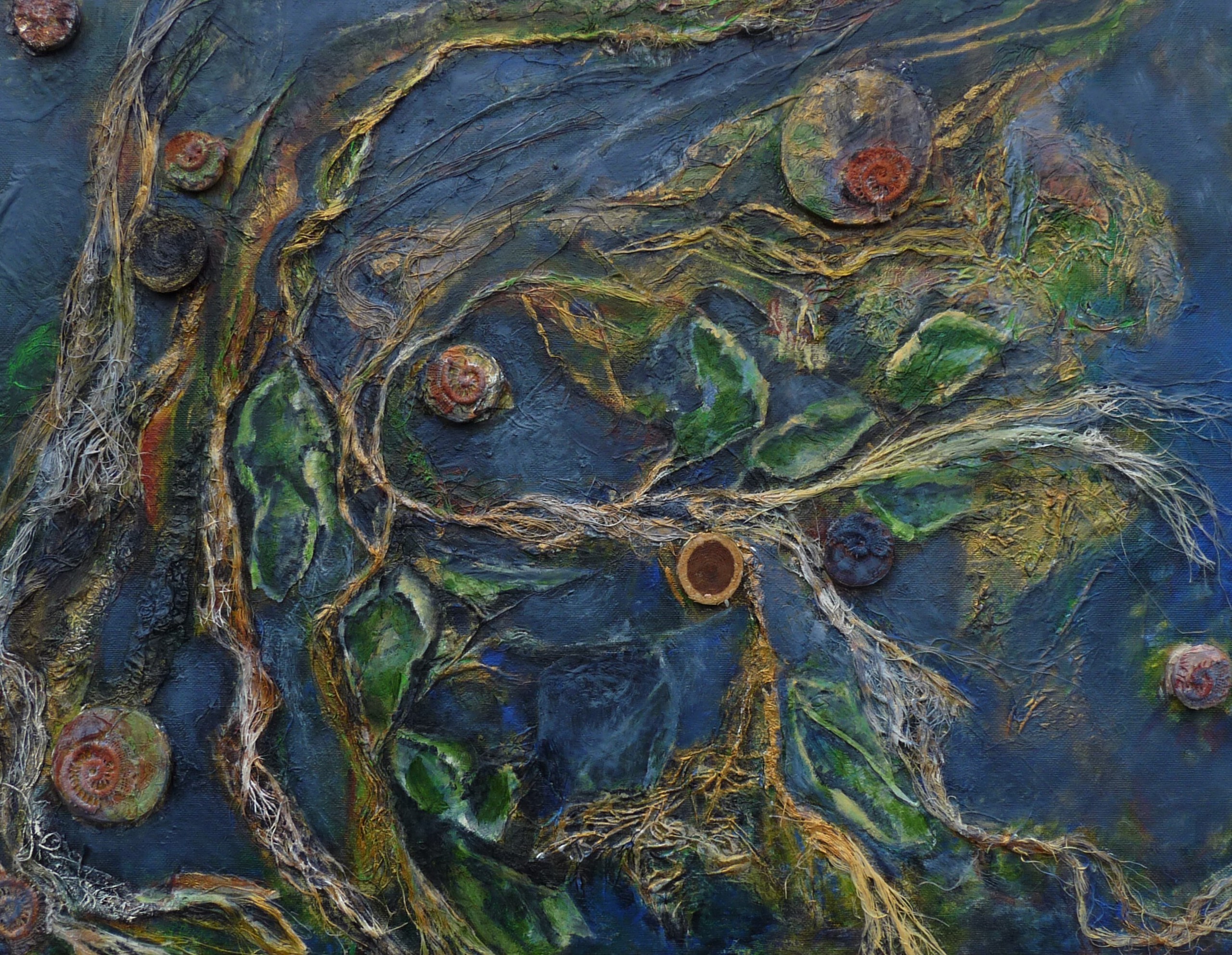 Marian Reintjes (1948) werkt in uiteenlopende technieken maar gebruikt steeds hetzelfde uitgangspunt: zonder plan begint zij met een materiaal en start daarmee een proces dat zich steeds meer ontvouwt