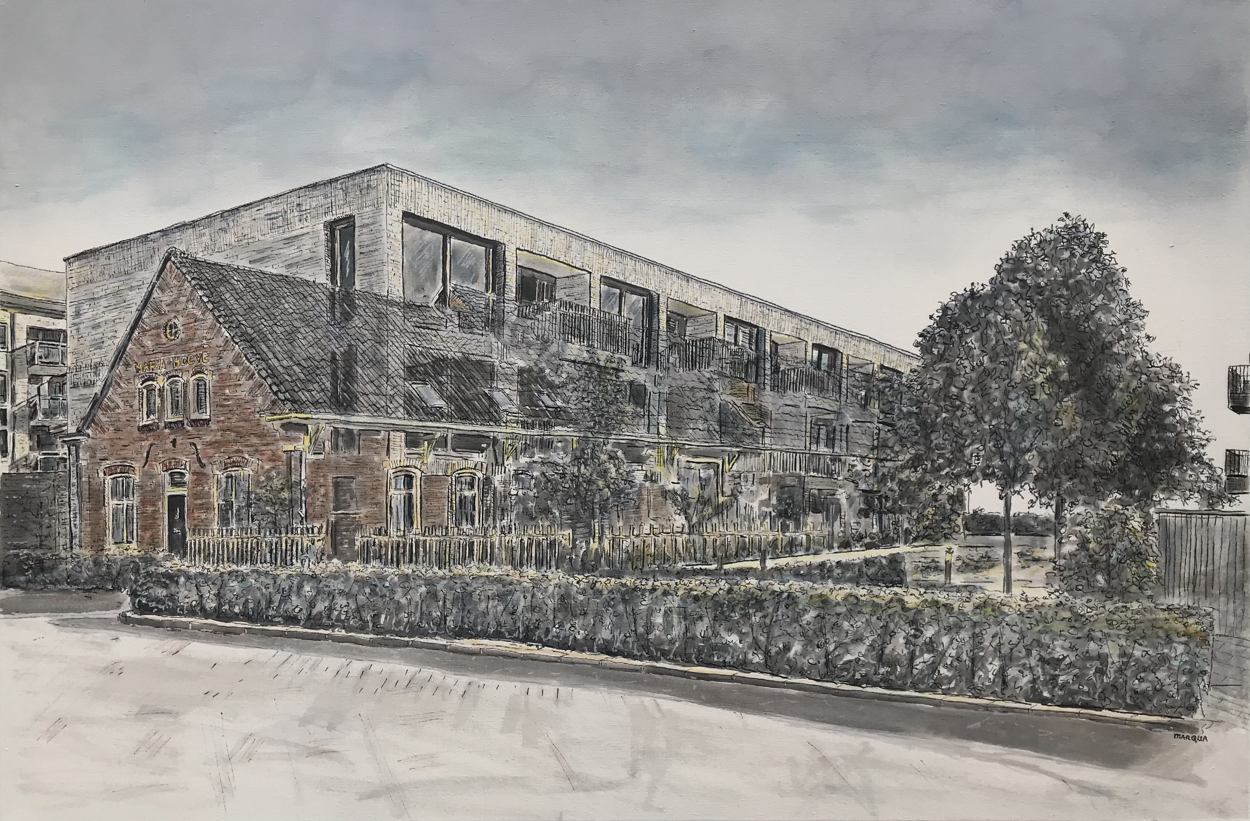 Appartementencomplex Mariahoeve in Schijndel is 21 oktober 2021 feestelijk geopend door de wethouder dmv de onthuling van het door mij in OPDRACHT gemaakte schilderij 80x120 cm. De vroegere boerderij en de nieuwe appartementen zijn tot een geheel verwerkt, oud en nieuw gecombineerd.