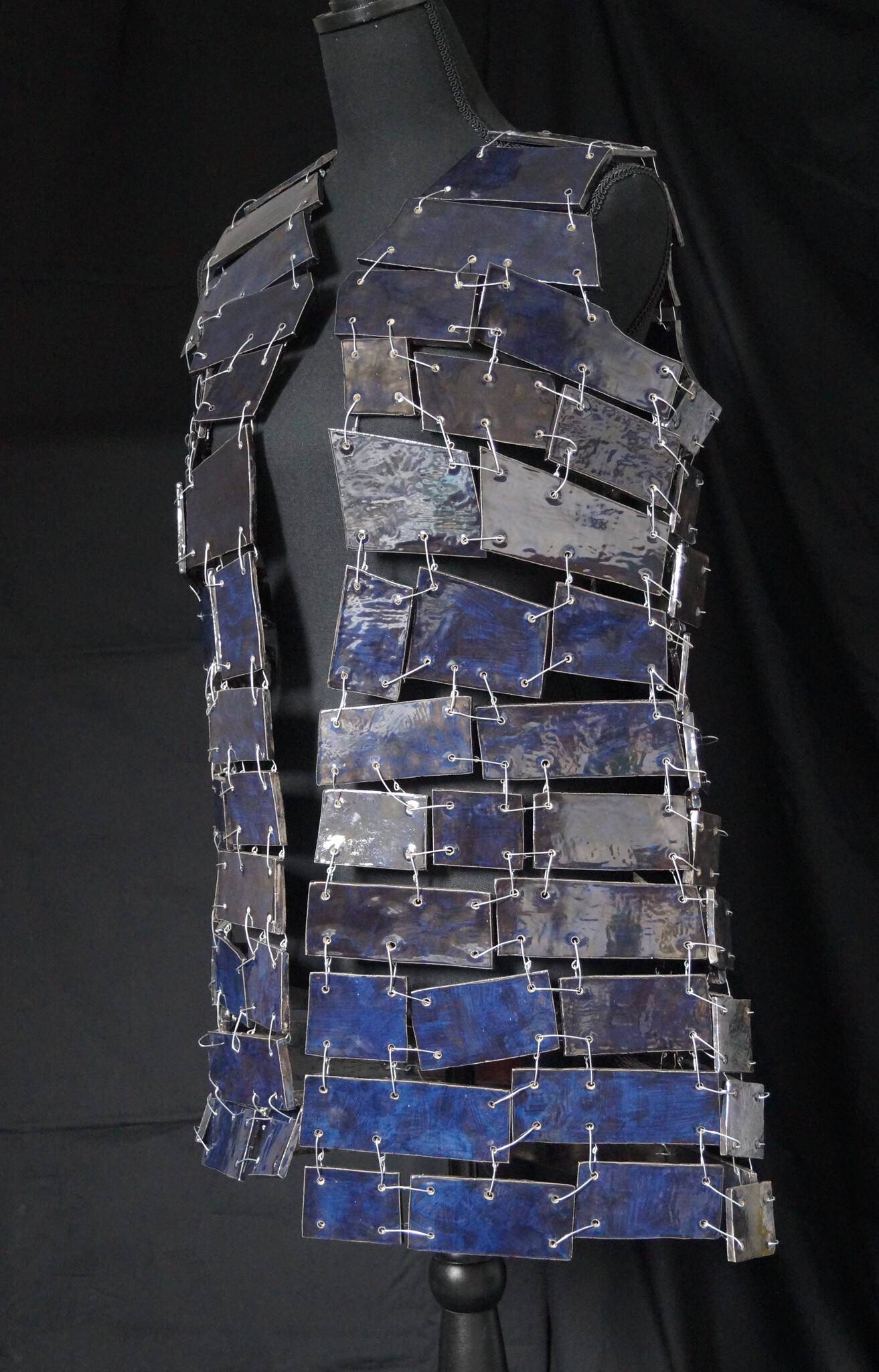 "Harnas" is een vest gemaakt van plaatjes keramiek die met ijzerdraad aan elkaar zijn bevestigd en is de tegenhanger van "Kwetsbaar'.