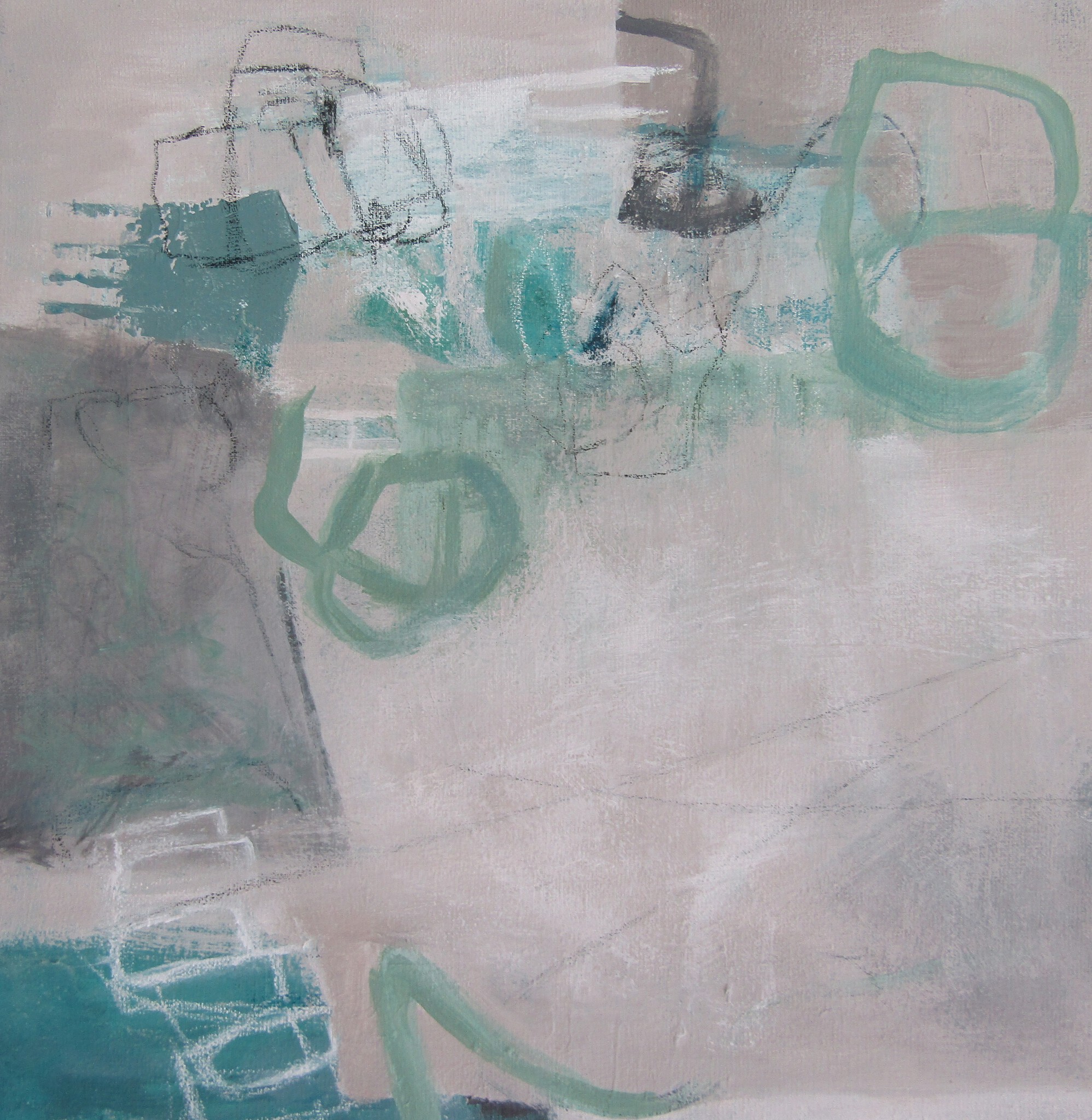 Schilderij Grijs Acryl Groen Klein Mixed Media Werk Minimalistisch Lyrisch Landschappelijk Abstractacryl