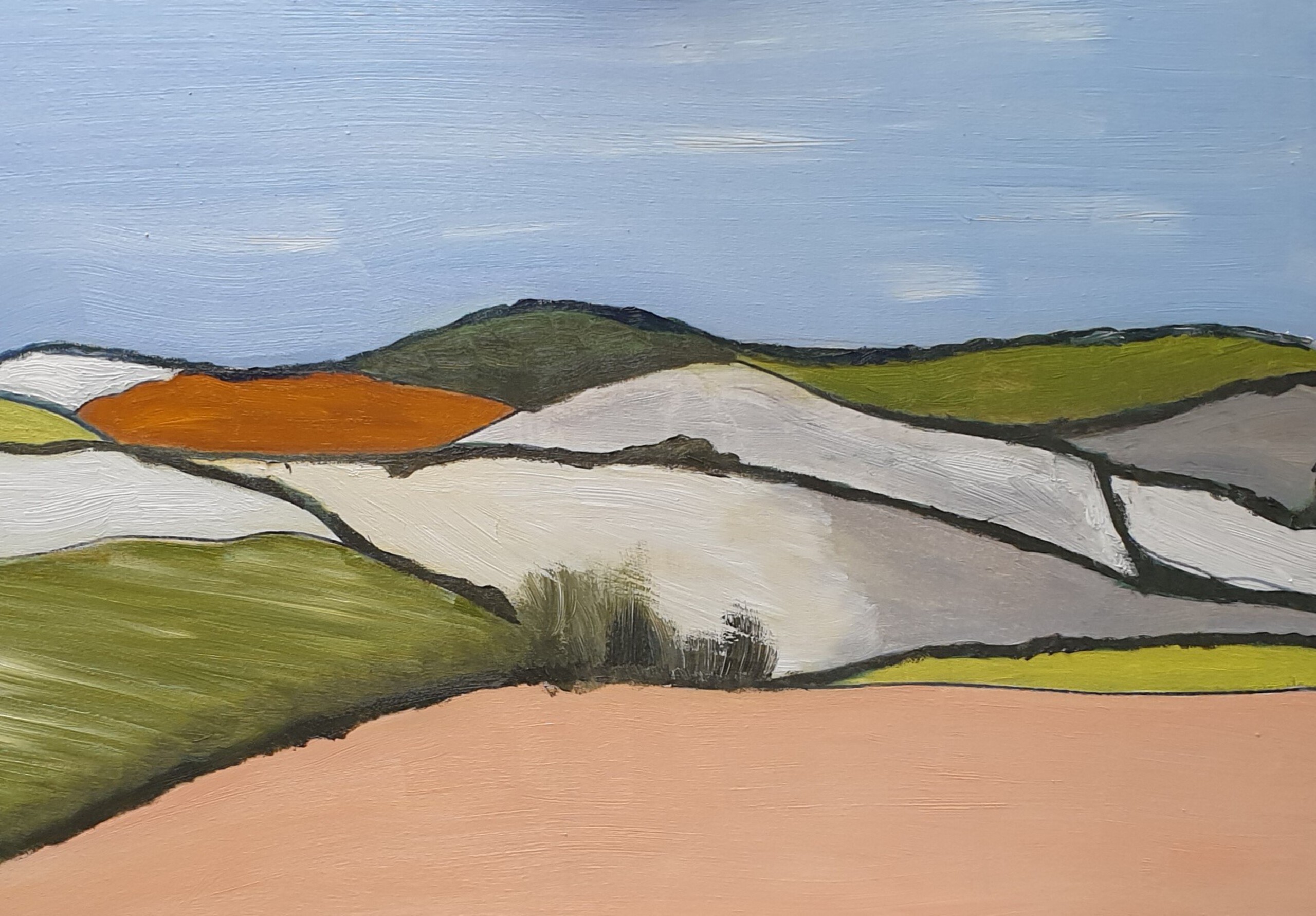 Mijn interesse gaat uit naar vlakken en lijnen van waaruit de wereld om ons heen is opgebouwd. Door deze zichtbaar te maken ontstaan er figuratieve schilderijen die in hoge mate vervreemdend werken.