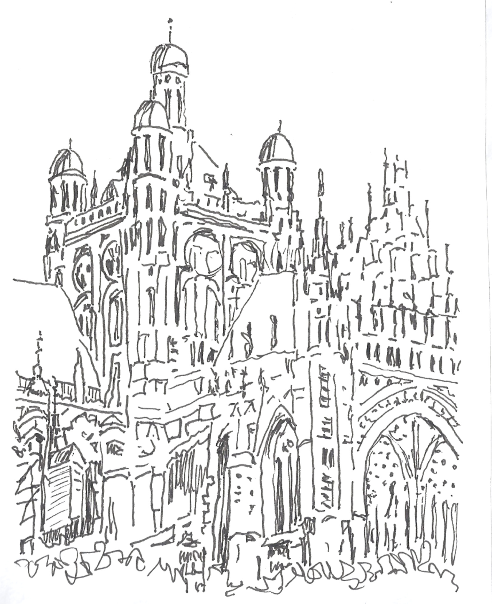 Zwart/wit Kathedraal Torens Pentekening Miniatuurtje