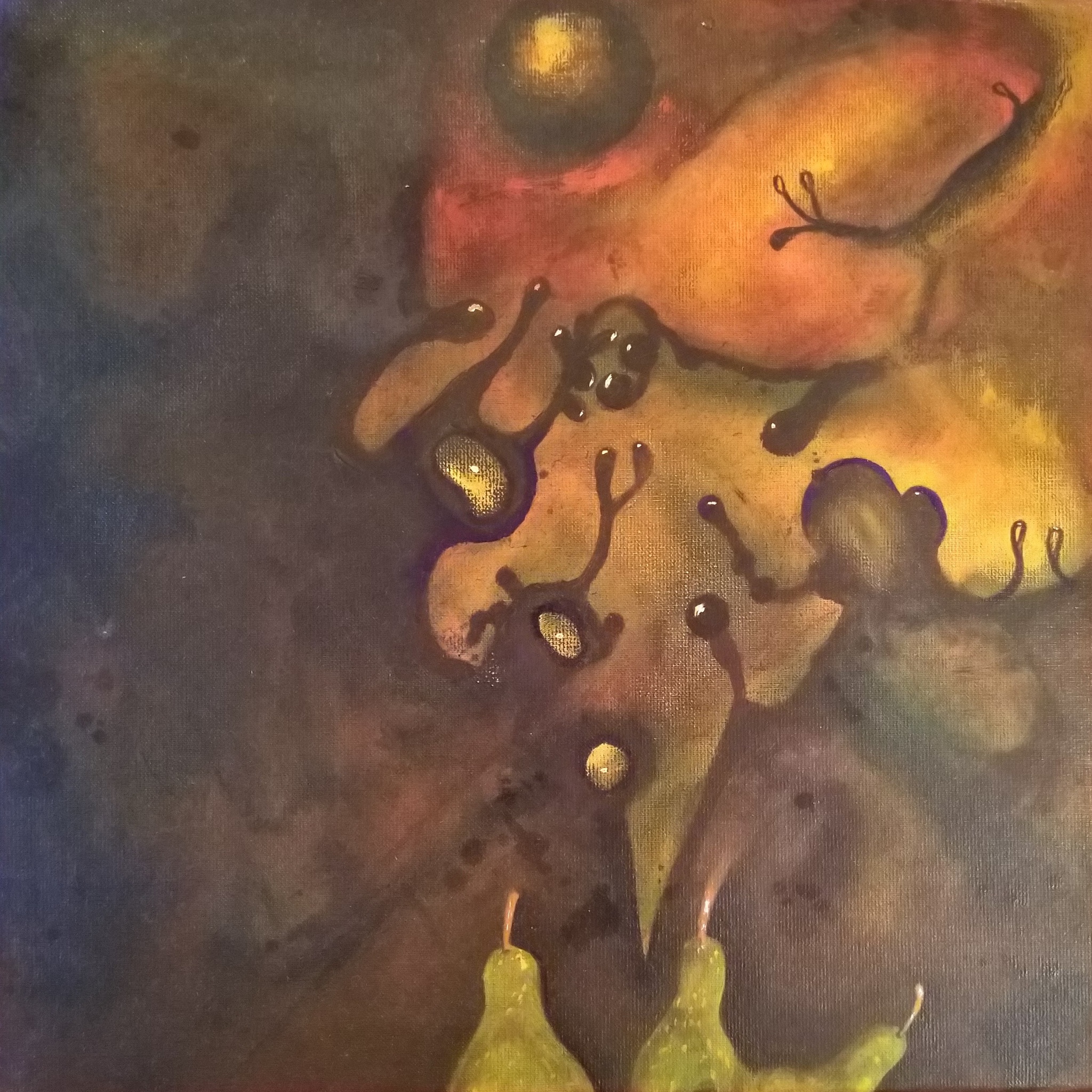 Rock songs uit de jaren '70-'10 vormen de inspiratiebron voor mijn surrealistische schilderijen.