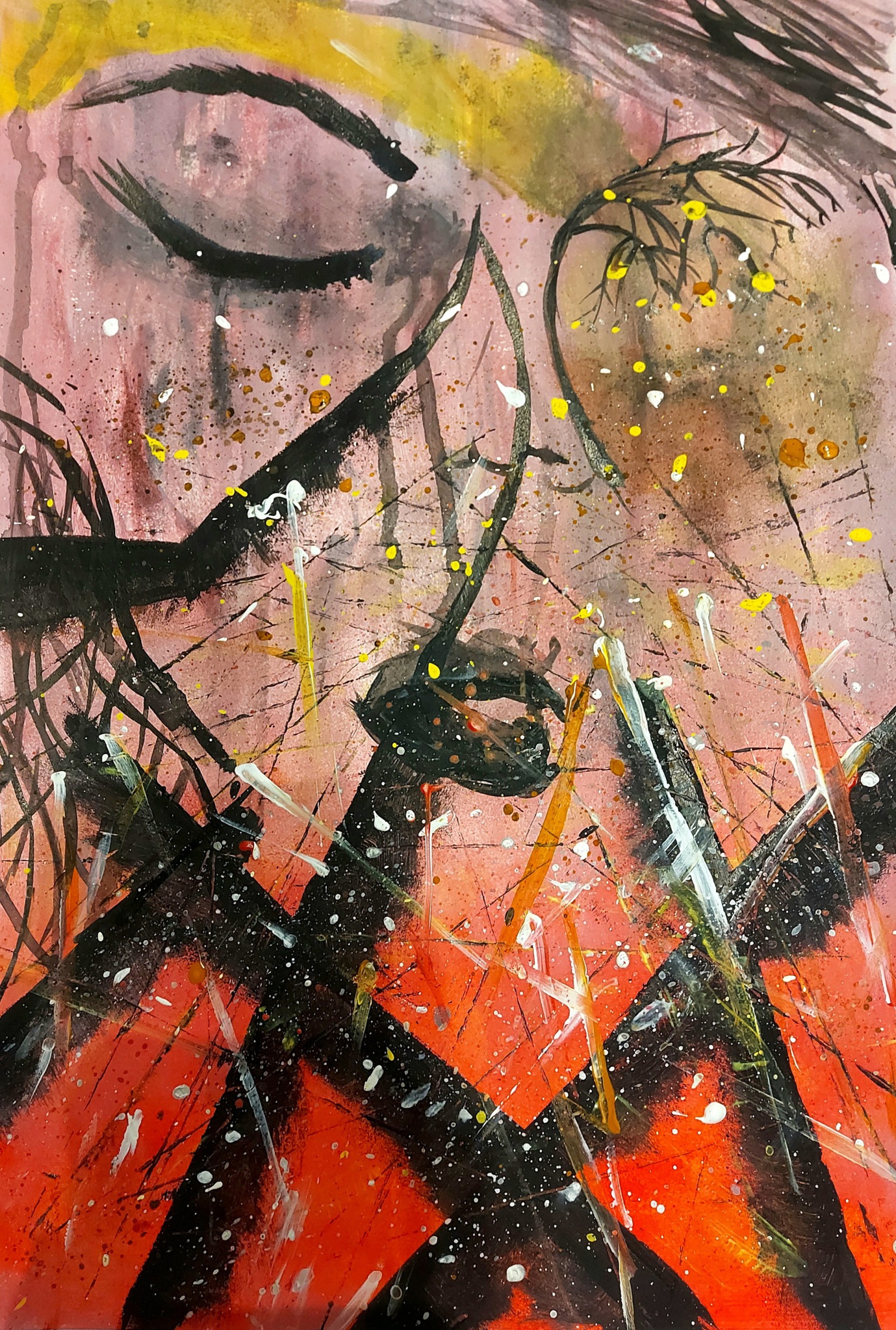Abstract Rood Gezicht Takken