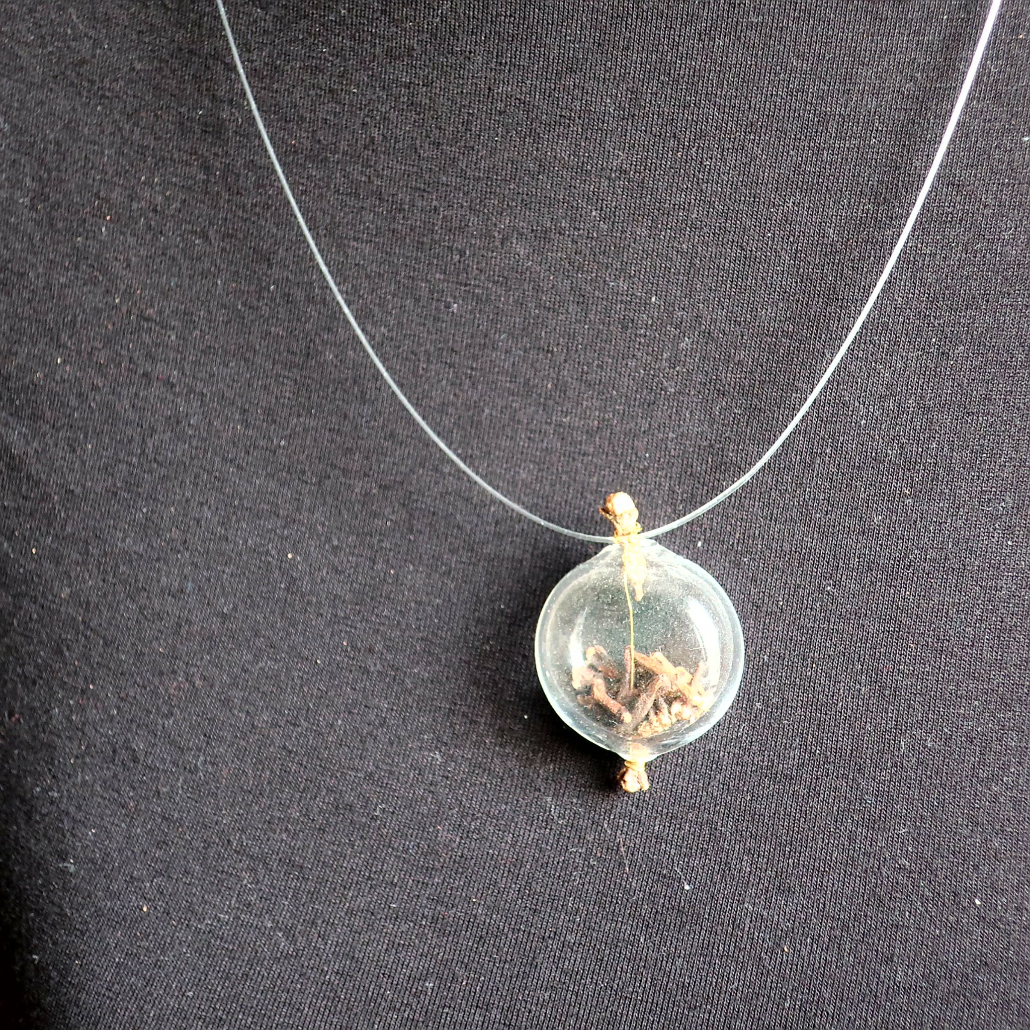 Indische Pracht van Dennis A-Tjak was de inspiratiebron voor deze hanger. Los an de unike smaak hebben kruidnagelen ook een prachtige vrom van nature. Eeen steeltje met een soort kroontje. Het kroontje vergulden we natuurlijk. We combineren het met een mondgeblazen kraal van Murano. In de kraal meerdere kruidnagelen en we gebruiken twee kruidnagelen om de kraal af te sluiten. Het mooiste van twee werelden. (Door de scherpte van de foto ziet de kraal er 'vuil' uit. Gedragen als sieraad is dit niet zichtbaar.)
