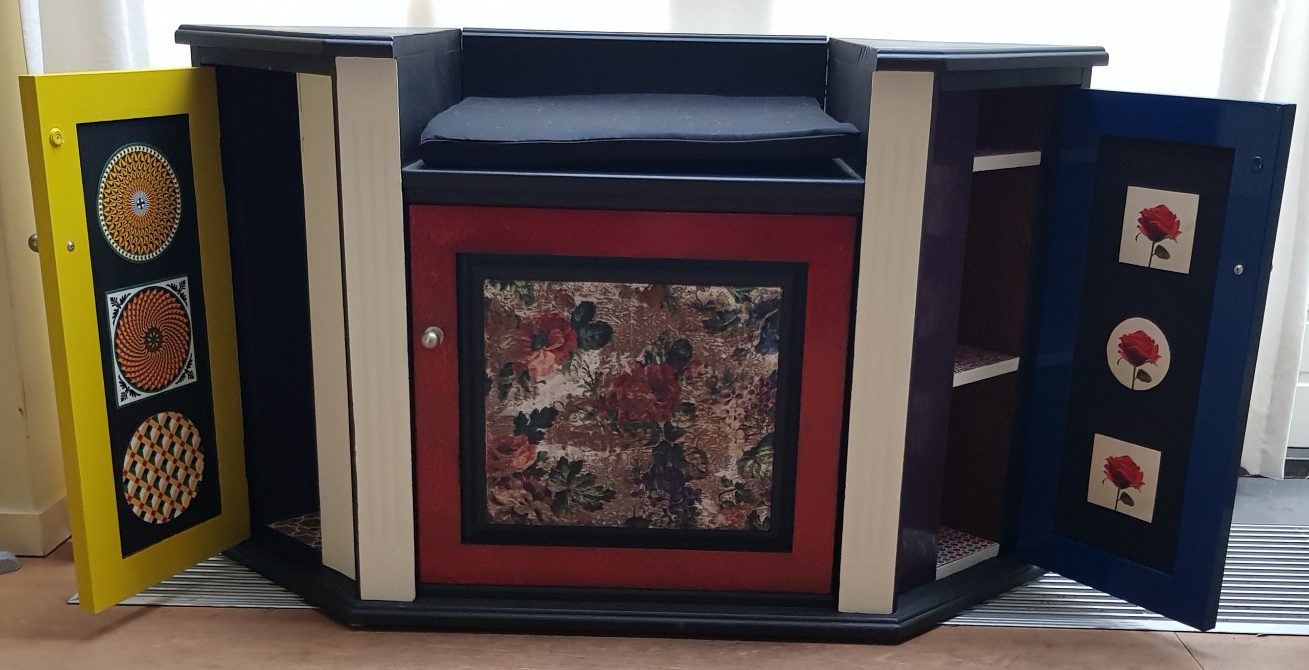 Een tv-meubel is omgevormd tot een mooie stoel die in een kasteel niet mis zou staan.