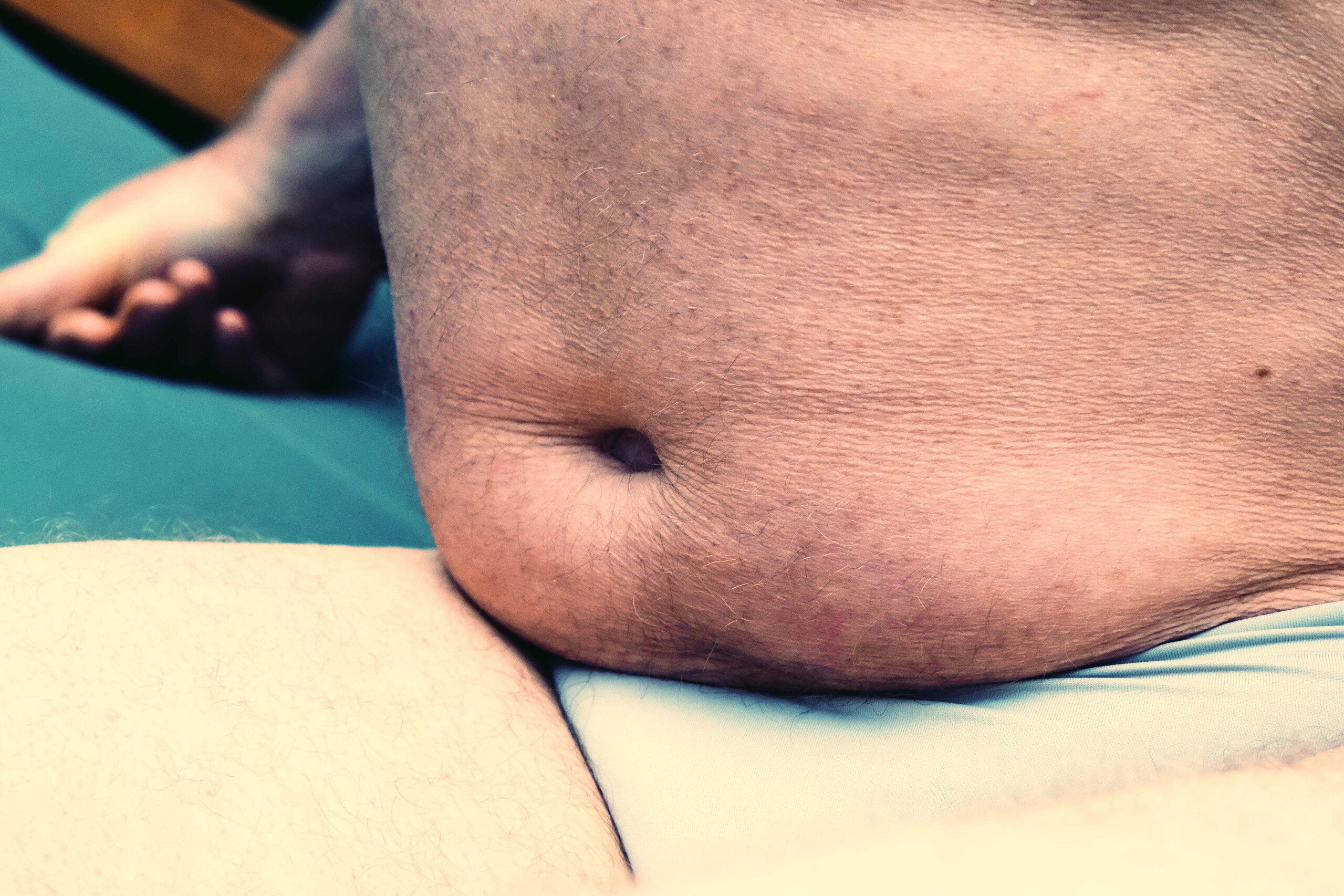 De darmen vormen het tweede brein, denken en voelen spelen zich daar af, zo ontdekte de wetenschap. Geen wonder dat we last van onze buik krijgen als we zenuwachtig zijn. En dat 'onderbuikgevoel', gut feeling.... Derde foto in serie van vier bij elkaar horende foto's. De buik mag er zijn, in al zijn verschijningsvormen. Hoera voor de buik, al is het ook wat ongemakkelijk om ze zo groot te zien. Smaller sizes possible. Limited edition printed on pearl photopaper on dibond with 3 mm acryl and hanging system.