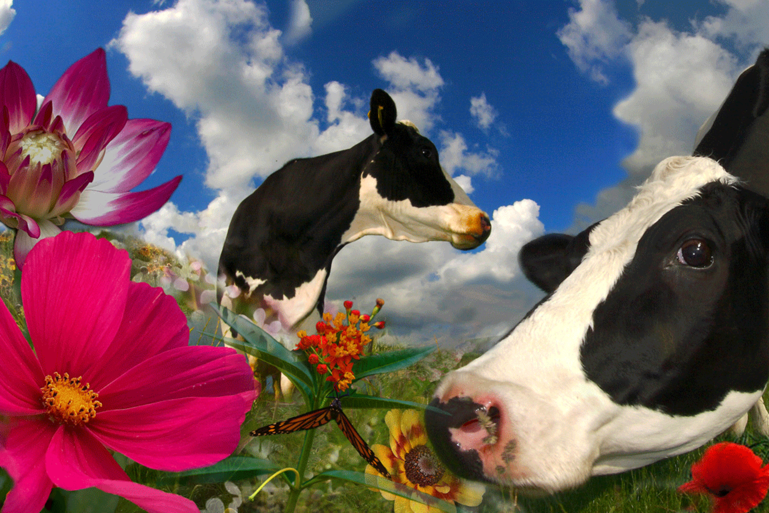 Landschap Blauw Groen Bloemen Koe Lucht Koeien Holland Wei Weides